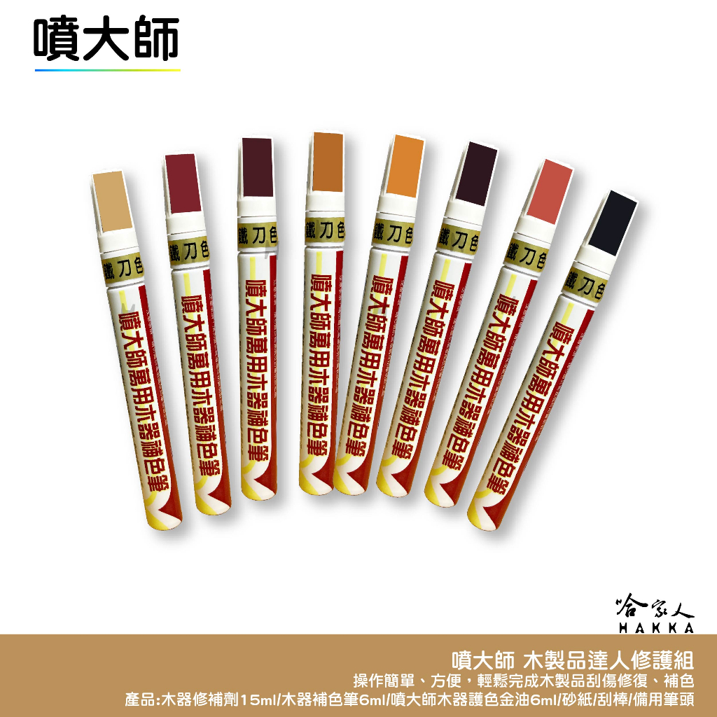 噴大師 木製品達人修護組 木頭桌補色 家俱補漆筆 木紋修補漆 刮痕修復 柚木 紅木 核桃木 桌椅修補 椅子 哈家人