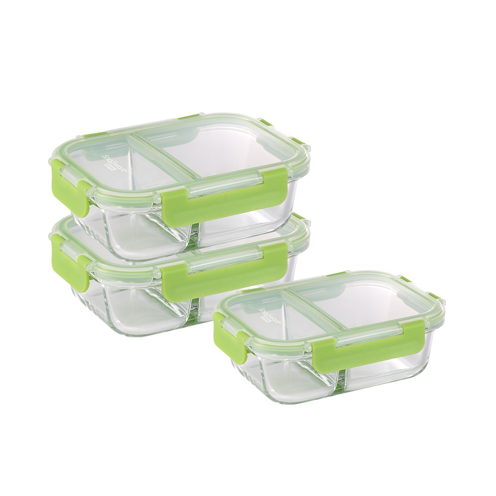 【Snapware康寧密扣】(全新升級)全分隔 長方形玻璃保鮮盒大容量3件組-C01
