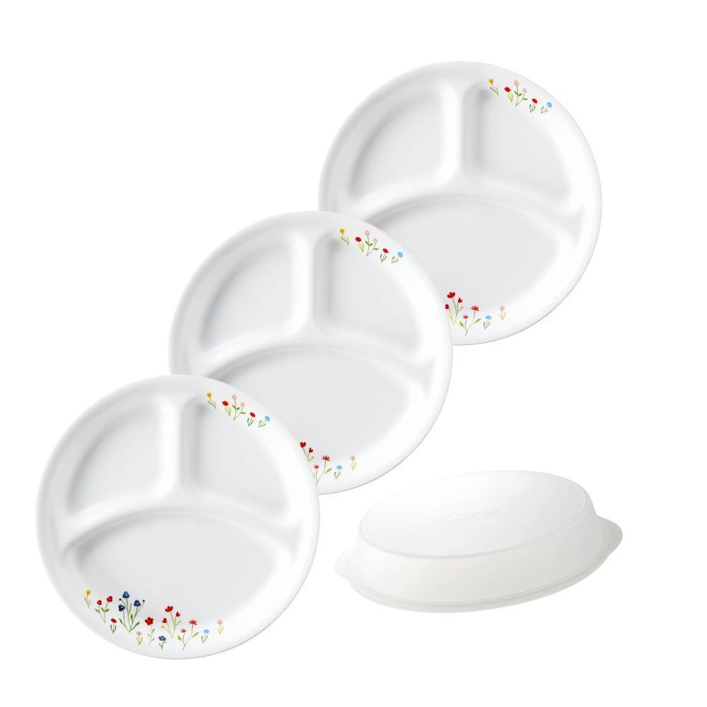 【美國康寧 CORELLE】10吋分隔盤-三入組(多花色可選) 加贈10吋微波蓋乙個/211餐盤/綠野微風X3|春漾花朵X3PlatesBlack Hammer|美國康寧|掌廚|IdEa LifE餐廚