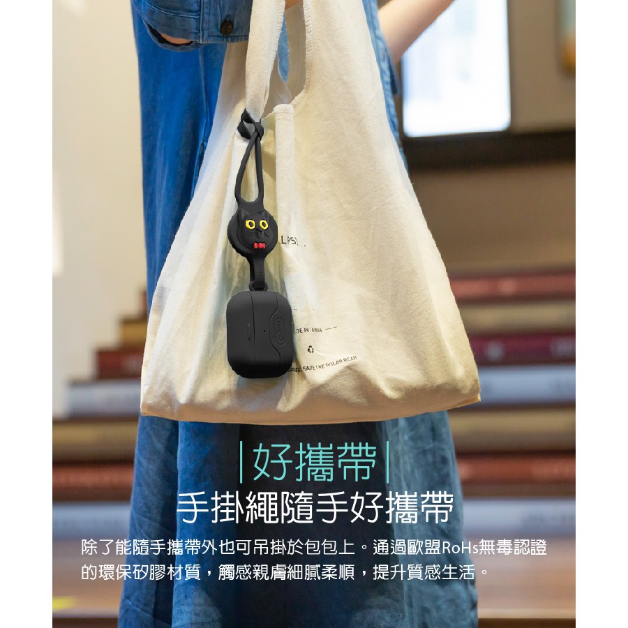 【Bone蹦克官方】AirPods Pro 手掛保護套黑色|喵喵貓|麋鹿先生|派提鴨|企鵝小丸Wearable AccessoriesBone 台灣官方旗艦店