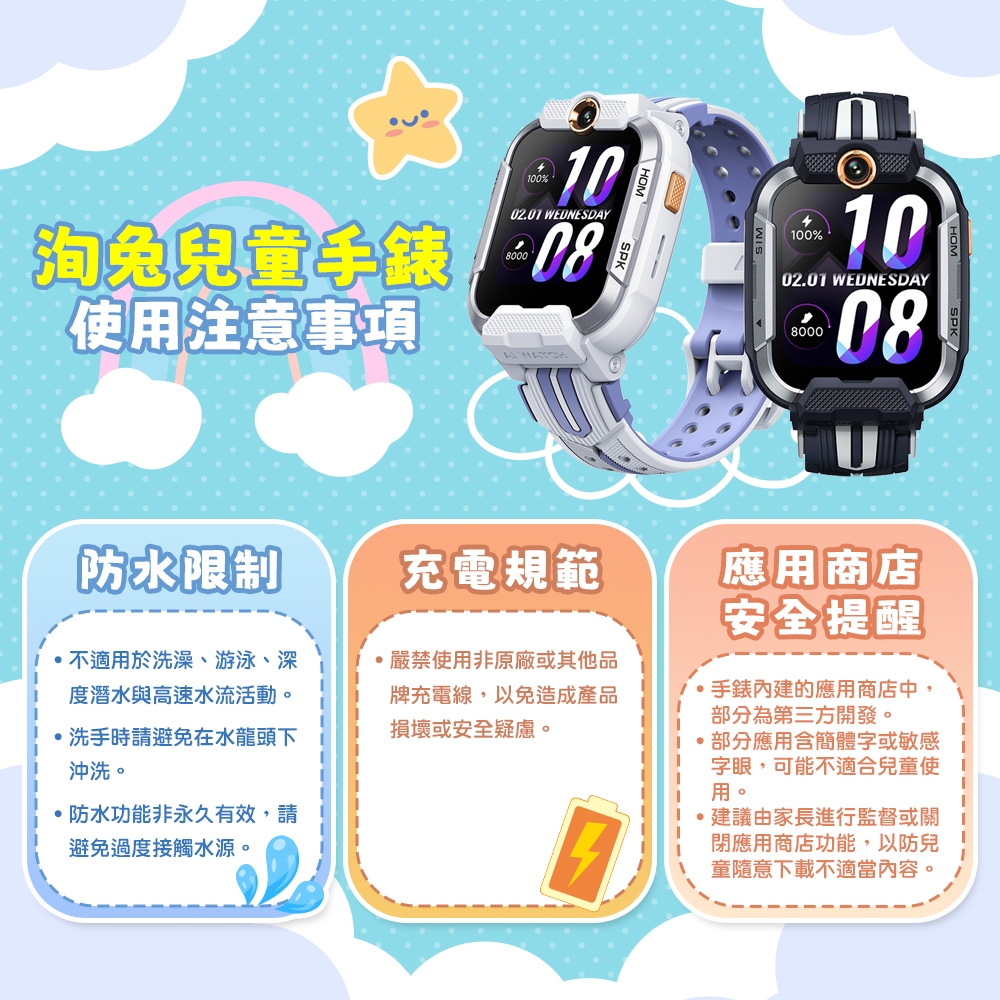 【四片保護貼全方位保護】洵兔兒童手錶(大螢幕) 雙鏡頭 防水 Google 即將上線守護聽 遠端錄影星空藍|薰衣白Smartwatches & Fitness TrackersBone Sports 戶外生活