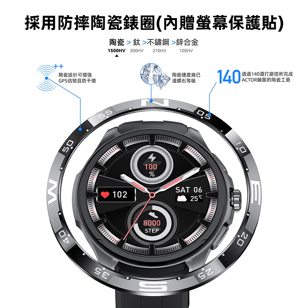 【GPS+LTPO+週充電一次】Kieslect Actor GPS 智慧運動陶瓷腕錶 軍規防水 50米深潛 送磁吸錶帶【GPS+LTPO+週充電一次】Kieslect Actor GPS 智慧運動陶瓷腕錶 軍規防水 50米深潛 送磁吸錶帶Smartwatches & Fitness TrackersBone Sports 戶外生活