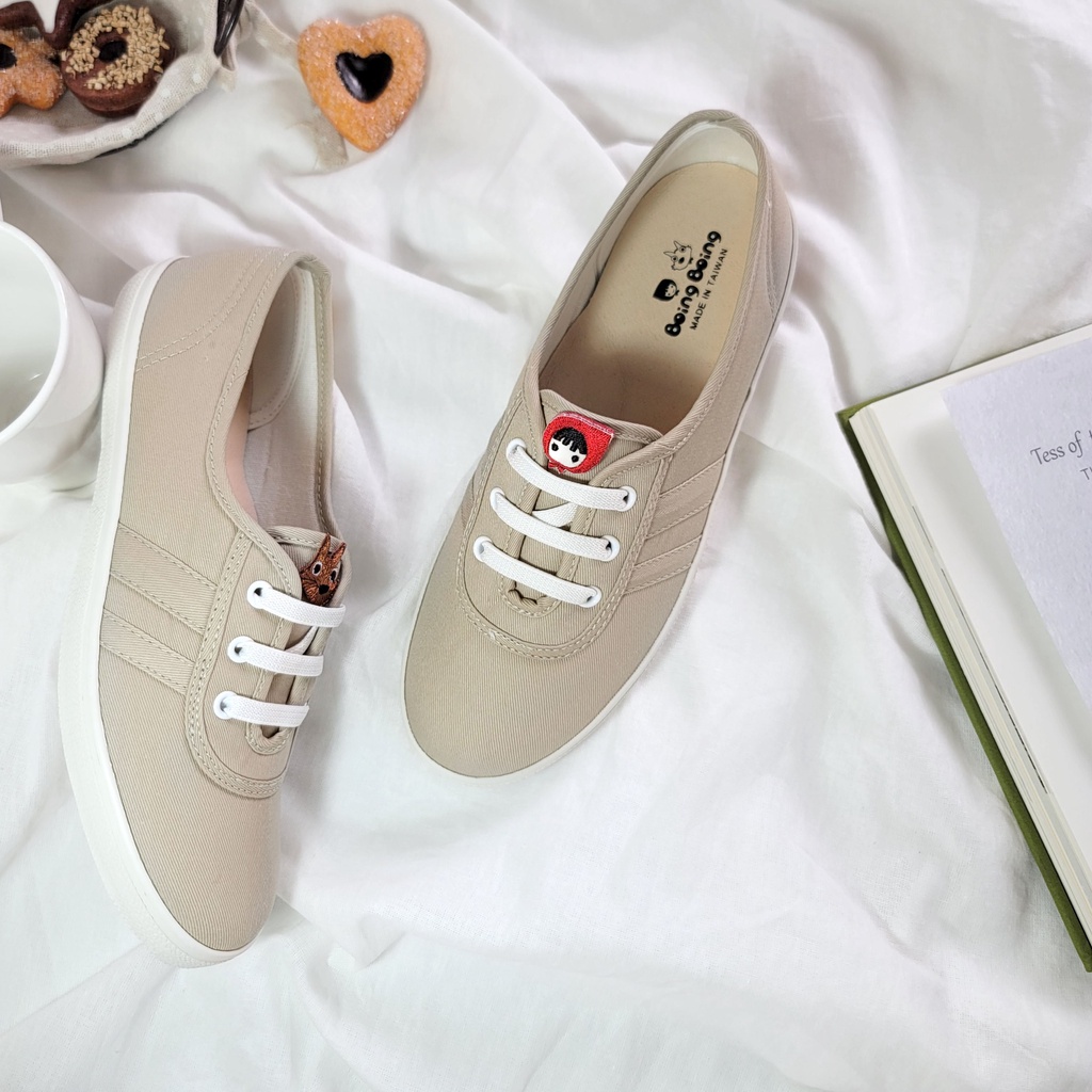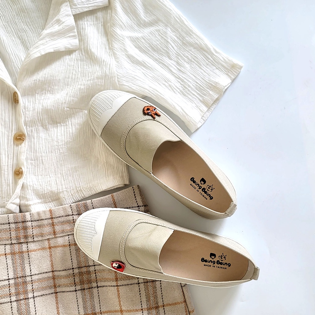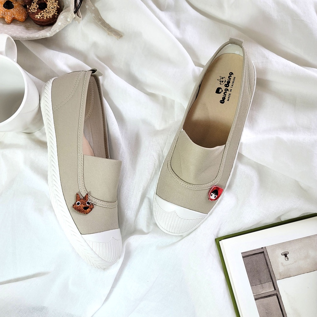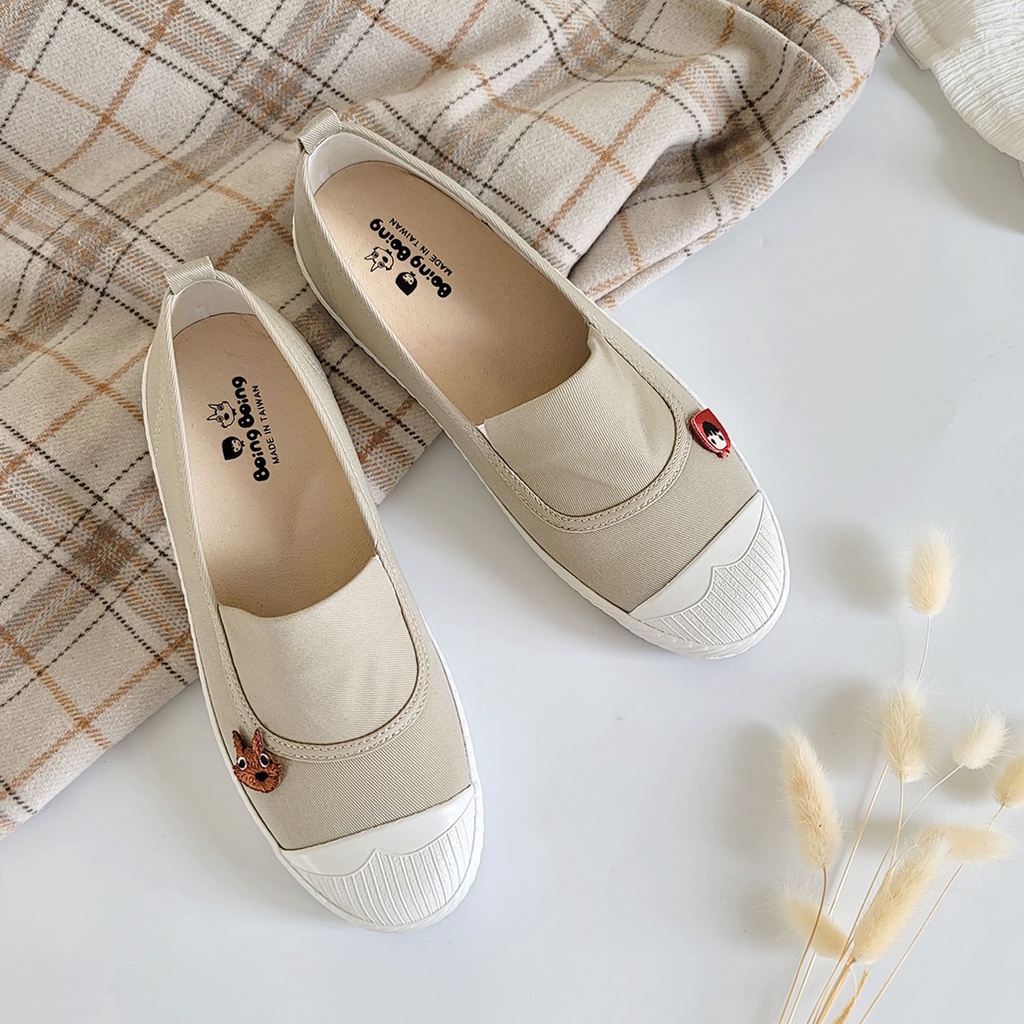 BoingBoing 淺口平底鞋 方便鞋 懶人鞋 休閒鞋 帆布鞋 免綁鞋帶 小紅帽鞋 女鞋 台灣製造 – 卡其色35(此為特別客製尺寸, 不可退換貨)|36|37|38|39|40|41Slip Ons, Mary Janes & MulesBoingBoing故事鞋