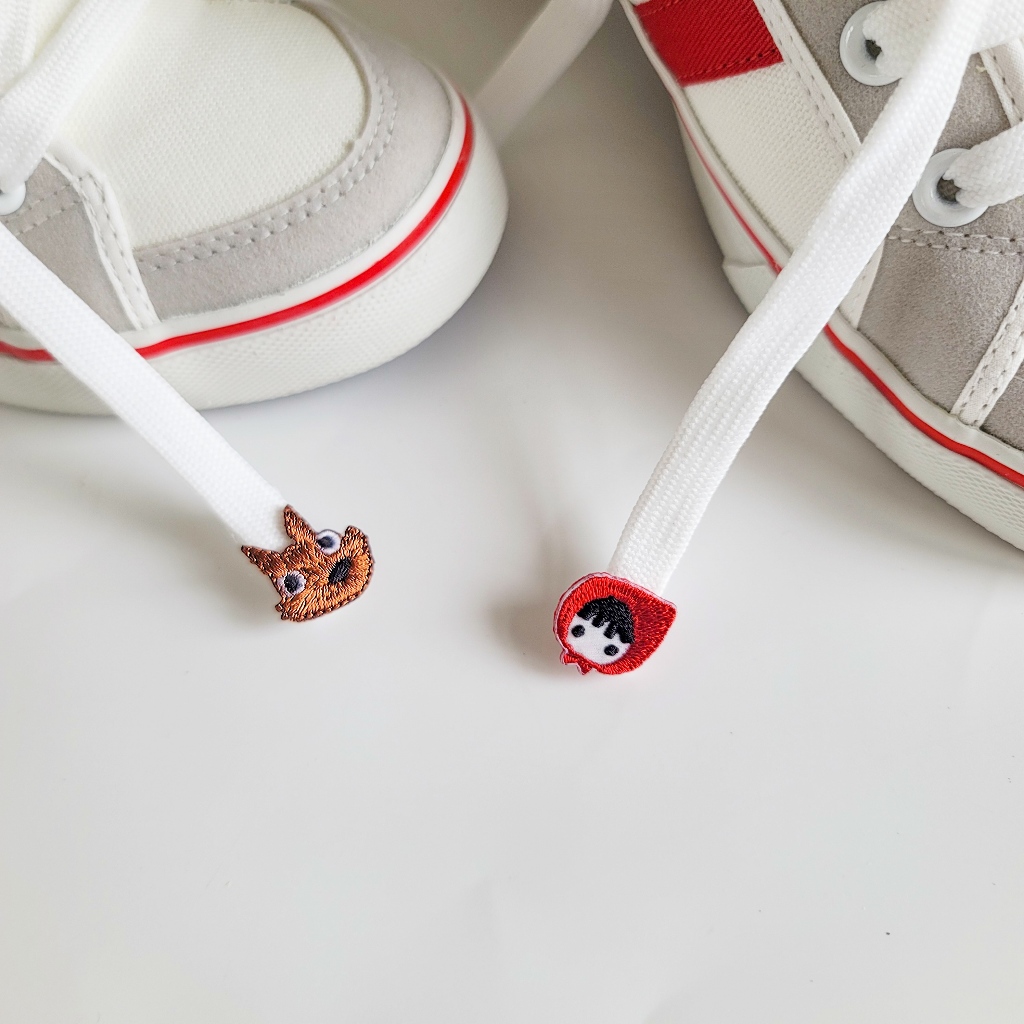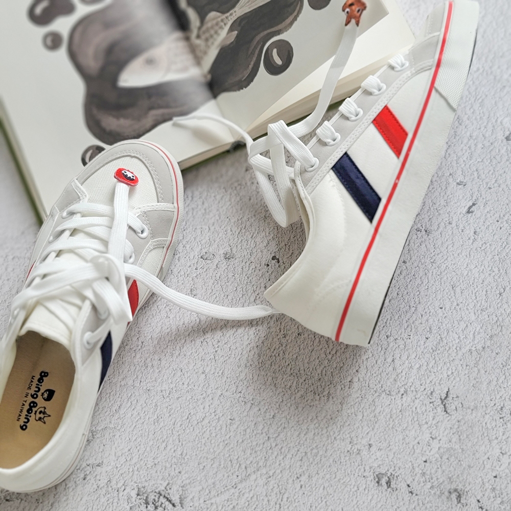Boing Boing (寬楦) 復古雙線綁帶休閒鞋 帆布鞋 小紅帽大野狼-白色36|37|38|39|40|41|42|43BoingBoing故事鞋