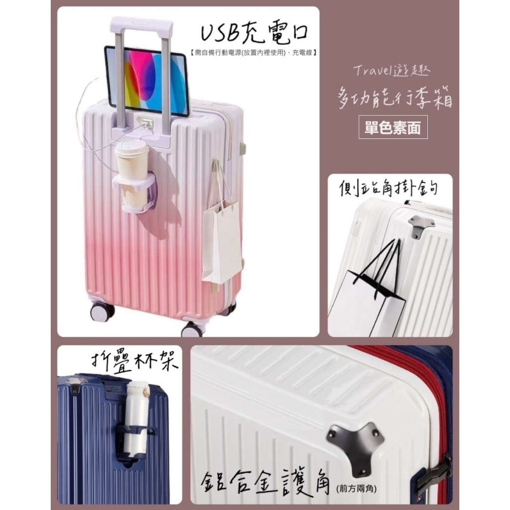 《Bogazy》Travel遊趣 USB充電孔/掛勾/杯架多功能行李箱登機箱(20吋/26吋)單色/喜樂藍,20吋|單色/喜樂藍,26吋(預購.預計八月底出)|單色/陽光黃,20吋|單色/陽光黃,26吋(預購.預計八月底出)|單色/光燦白,20吋|單色/光燦白,26吋(預購.預計八月底出)|單色/樂遊黑,20吋|單色/樂遊黑,26吋(預購.預計八月底出)|單色/微笑粉,20吋|單色/微笑粉,26吋(預購.預計八月底出)|單色/喜樂藍,20吋+26吋(裝一箱出貨)|單色/陽光黃,20吋+26吋(裝一箱出貨)|單色/光燦白,20吋+26吋(裝一箱出貨)|單色/樂遊黑,20吋+26吋(裝一箱出貨)|單色/微笑粉,20吋+26吋(裝一箱出貨)|單色/喜樂藍,20吋+20吋(裝一箱出貨)|單色/陽光黃,20吋+20吋(裝一箱出貨)|單色/光燦白,20吋+20吋(裝一箱出貨)|單色/樂遊黑,20吋+20吋(裝一箱出貨)|單色/微笑粉,20吋+20吋(裝一箱出貨)Bogazy 行李箱官方旗艦店