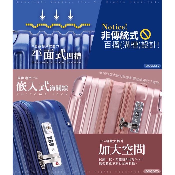 《Bogazy》可加大/防盜拉鍊多功能 19吋登機箱/行李箱【蝦皮團購】炫光▲深鐵灰|炫光▲玫瑰金|炫光▲黑色|極光-鐵灰|極光-黑|極光-冰雪藍|極光-女神紫|炫光▲紫色|炫光▲黑色金護角Bogazy 行李箱官方旗艦店