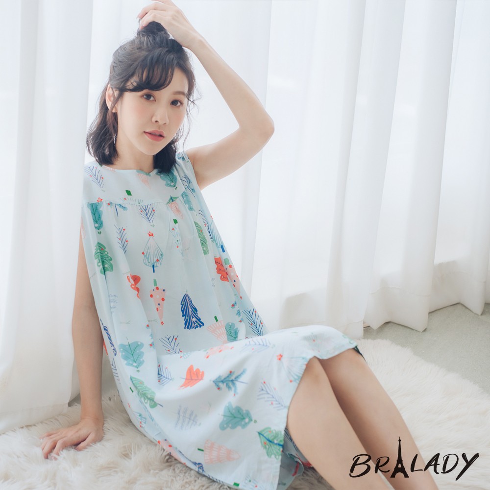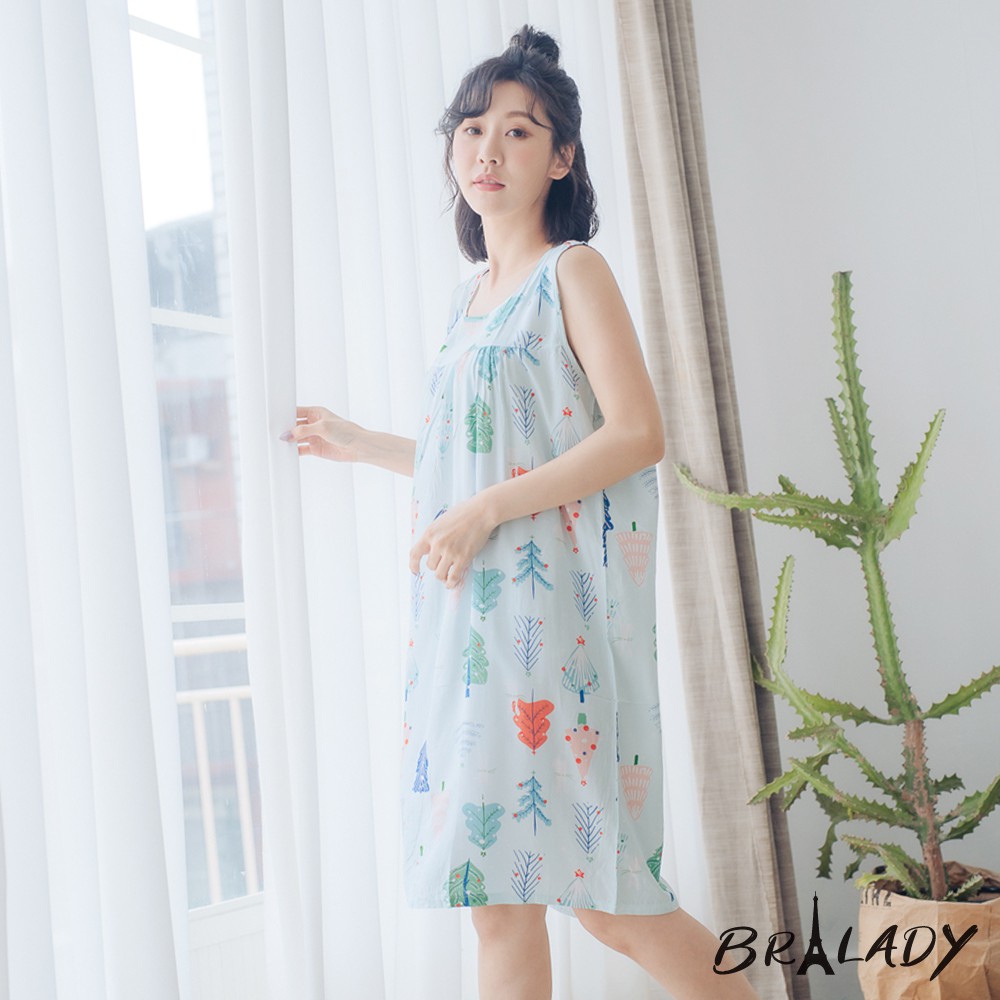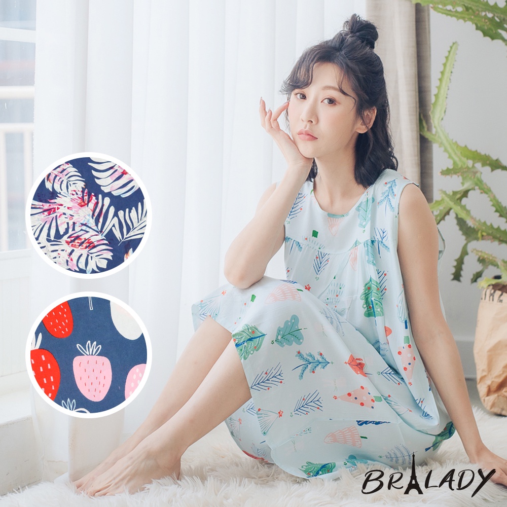 波蕾妮|涼爽無袖連身裙印花睡衣 泰國洋裝【M501】冰絲 背心裙 少女 休閒 居家服 夏季 舒適 10/28童趣草莓|清新白花|質感藍葉|好眠少女|抽象風|泰式花繪|長頸鹿|悠游魚兒|童趣鬱金香|小白兔PajamasBra Lady波蕾妮內衣官方旗艦店
