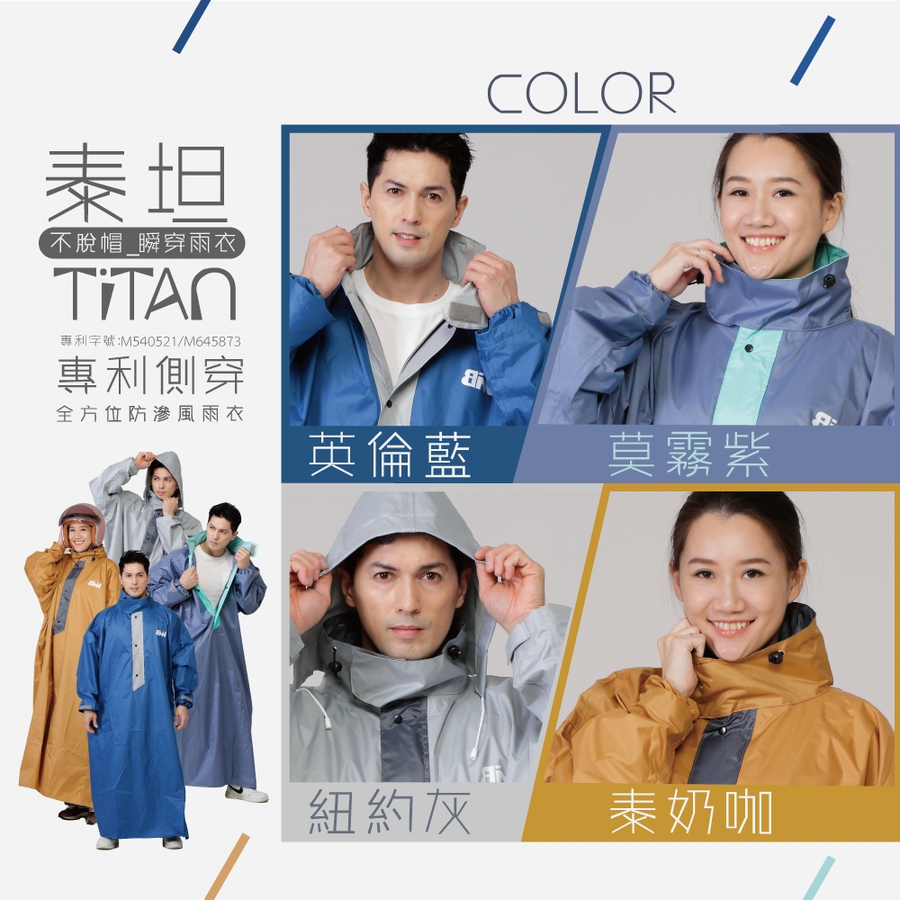 BNN 斌瀛 泰坦TiTan 專利側穿 不脫帽 瞬穿防滲風雨衣 (兩大專利設計泰奶咖,5XL:180cm以上|紐約灰,4XL:170-180cm|泰奶咖,2XL:152-160cm|英倫藍,4XL:170-180cm|英倫藍,5XL:180cm以上|英倫藍,2XL:152-160cm|英倫藍,3XL:160-170cm|莫霧紫,3XL:160-170cm|莫霧紫,4XL:170-180cm|泰奶咖,3XL:160-170cm|紐約灰,2XL:152-160cm|紐約灰,5XL:180cm以上|莫霧紫,5XL:180cm以上|泰奶咖,4XL:170-180cm|紐約灰,3XL:160-170cm|莫霧紫,2XL:152-160cmRain CoatsBNN 購物