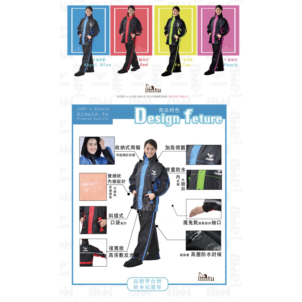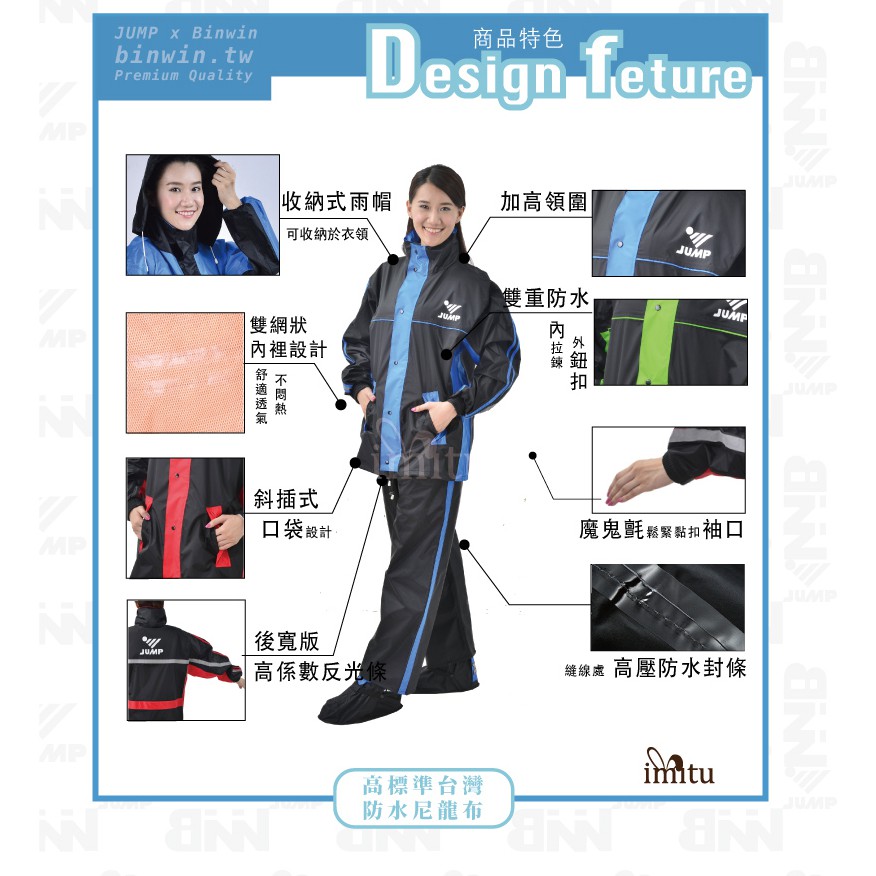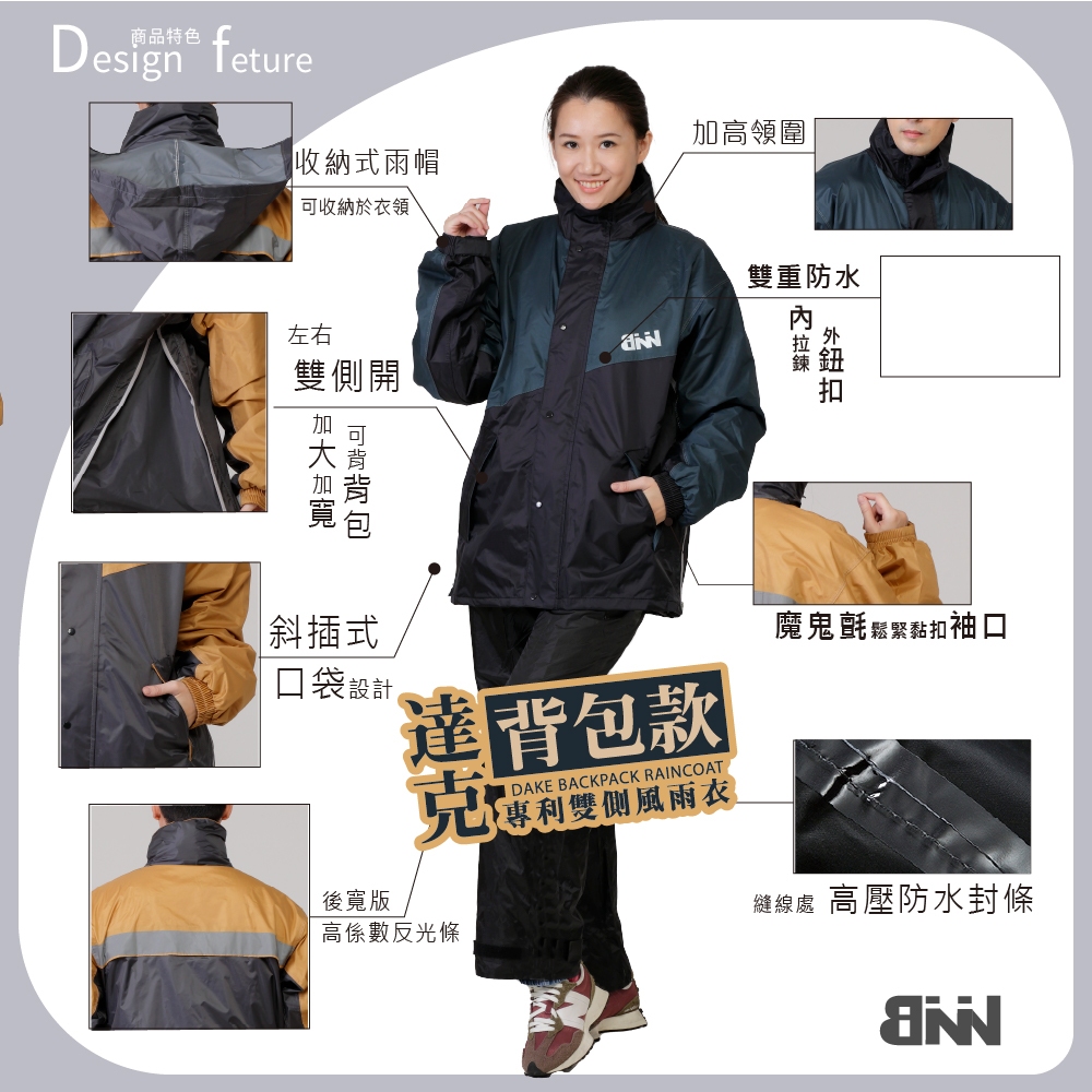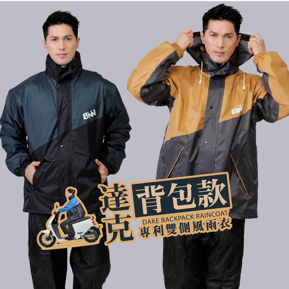 【BNN 斌瀛】JUMPXBNN 達克 雙側開背包款 套裝二件式防水雨衣(含防水雨褲) 限定色 布面材質 I BNN