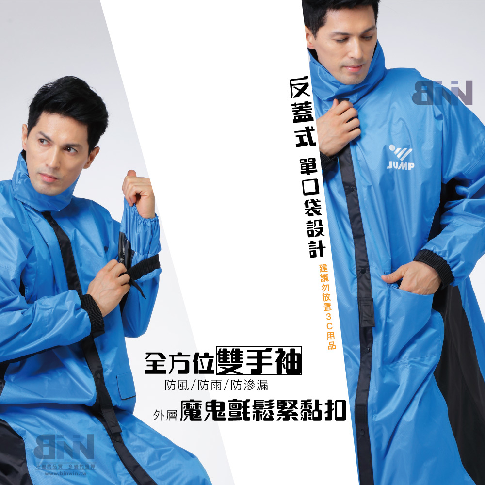 【JUMP 將門】T4 配色口袋一件式前開風雨衣 2XL-5XL I BNN