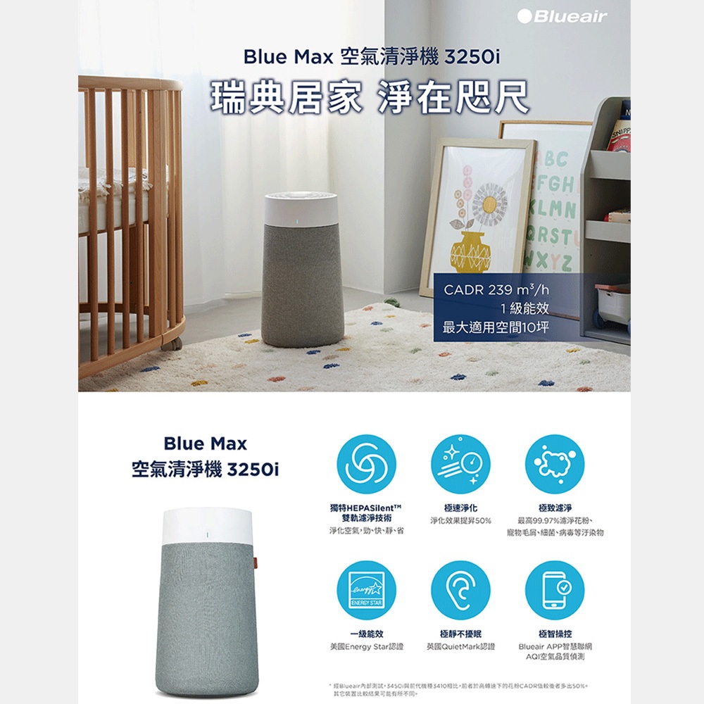 Blueair 智能wifi空氣清淨機3250i(最大適用10坪/輕巧/安靜/除異味)+送濾網耗材Blueair 智能wifi空氣清淨機3250i(最大適用10坪/輕巧/安靜/除異味)+送濾網耗材Air TreatmentBlueair | 恆隆行官方旗艦館