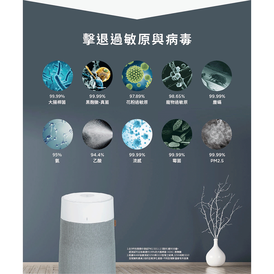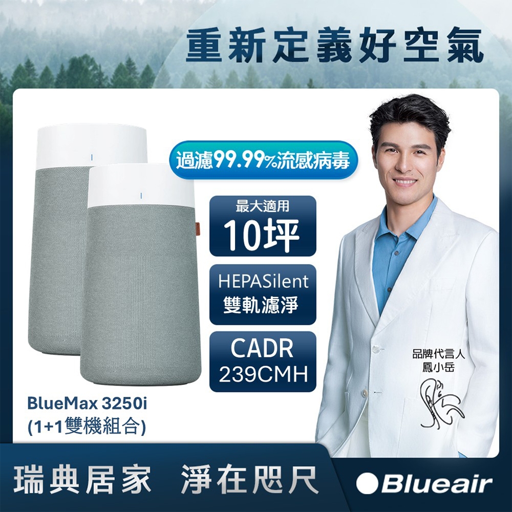 Blueair BlueMax智能wifi空氣清淨機3250i(最大適用10坪/輕巧/安靜/除異味) 1+1雙入組