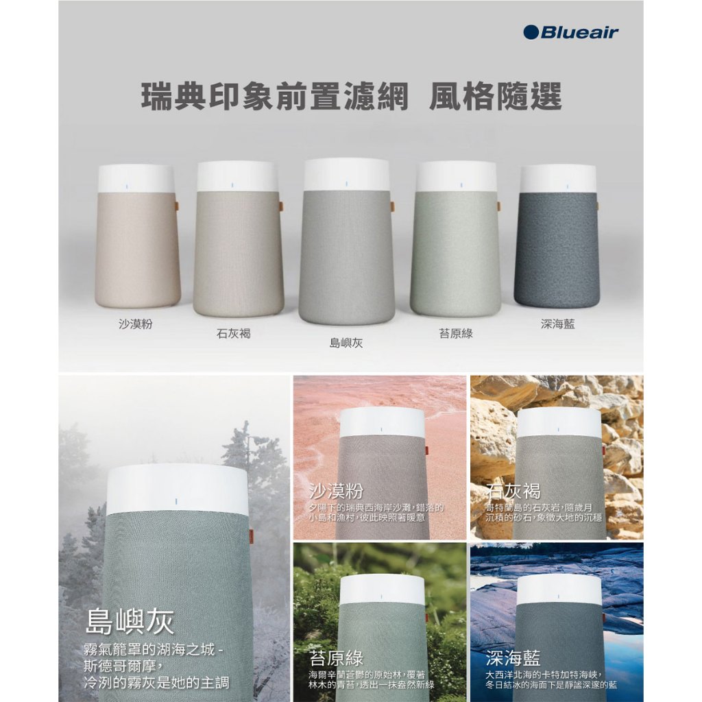Blueair 空氣清淨機3250i前置濾網 五色可選苔原綠|深海藍|沙漠粉|石灰褐|島嶼灰Air TreatmentBlueair | 恆隆行官方旗艦館