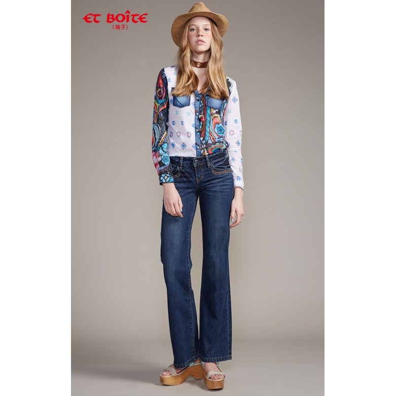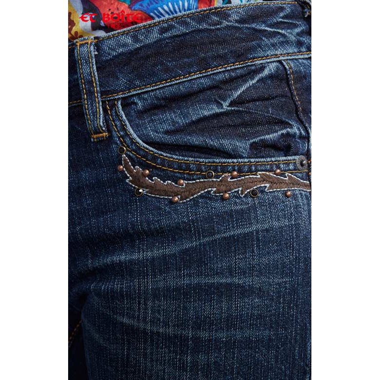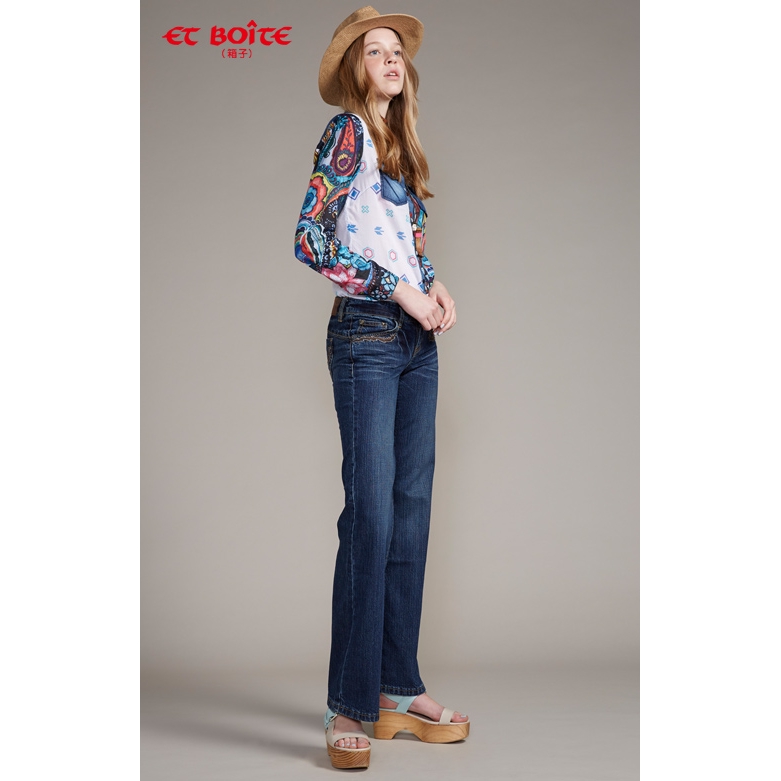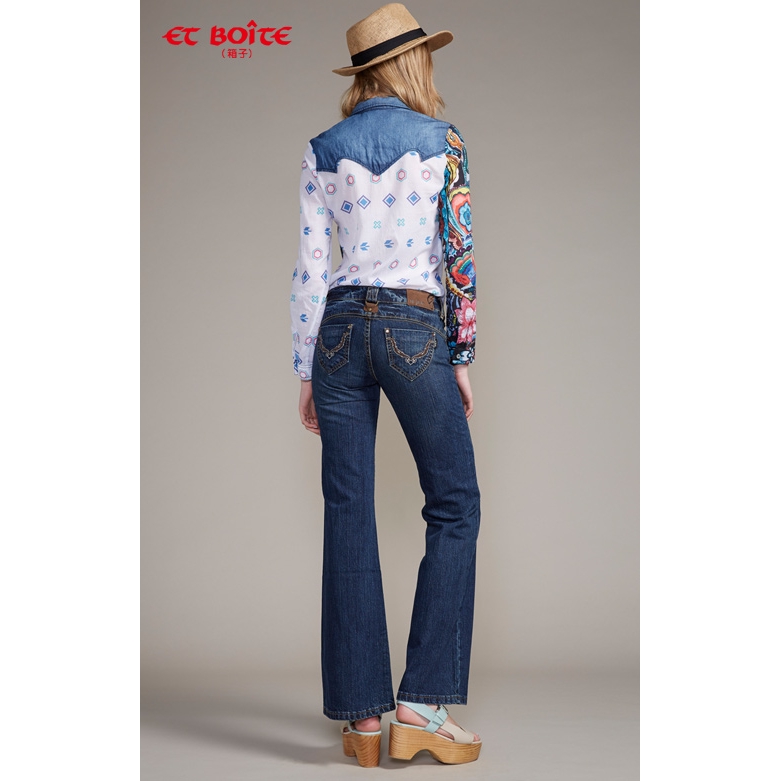 BLUE WAY ET BOiTE 箱子 – 嬉皮貼皮繡花牛仔靴型褲
