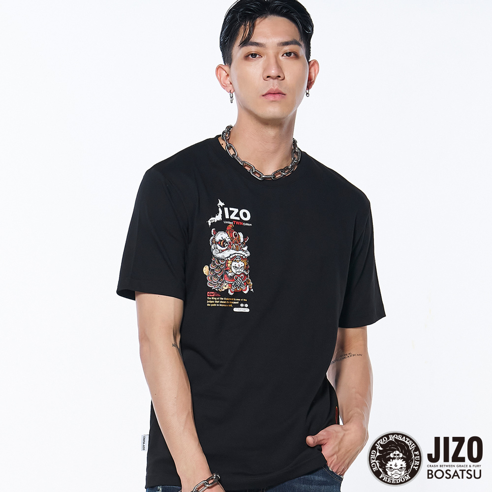 BLUE WAY 地藏小王 – 男款 緣起-瑞獅不倒翁短TEE(黑)M|L|XL|3LT-ShirtsBLUE WAY官方旗艦店