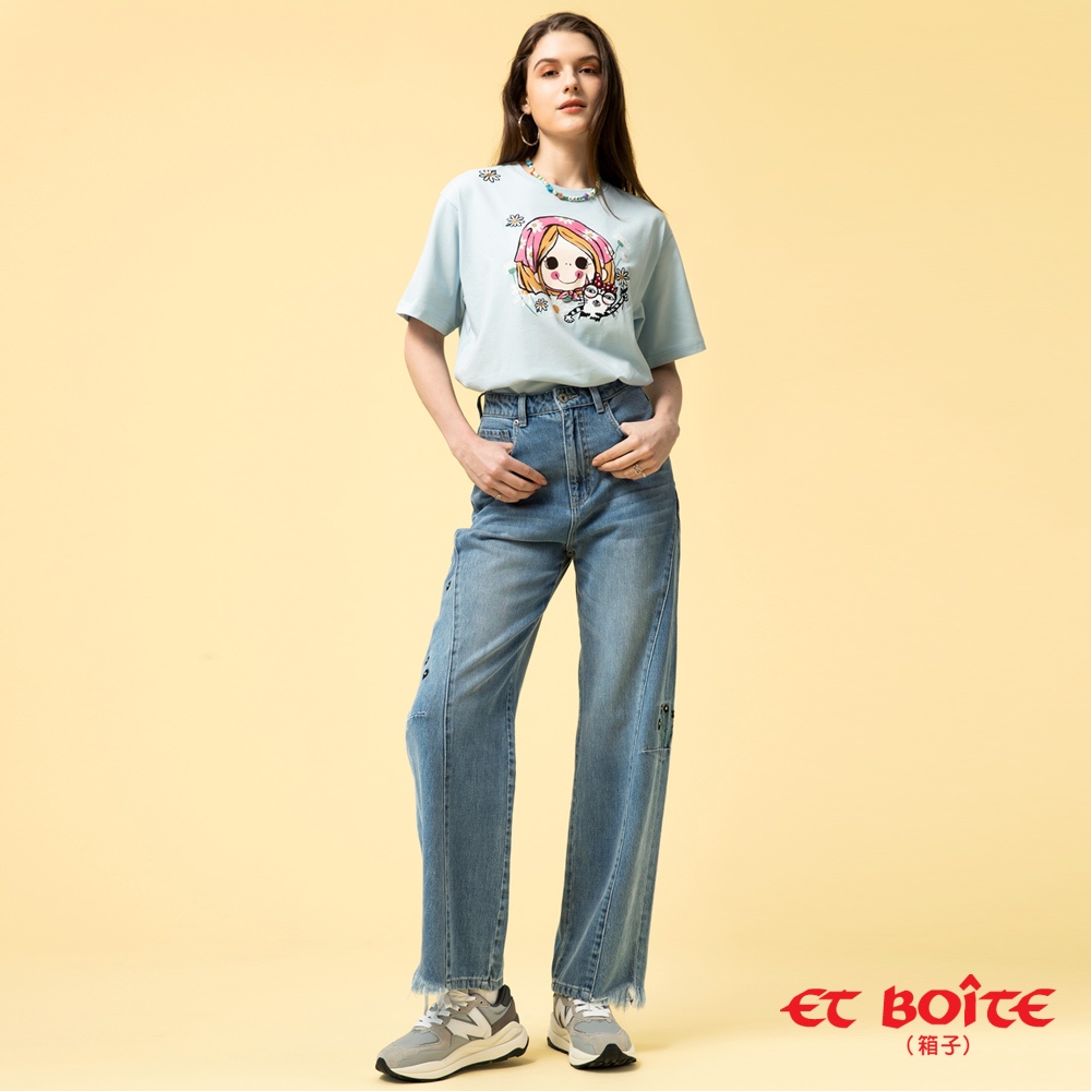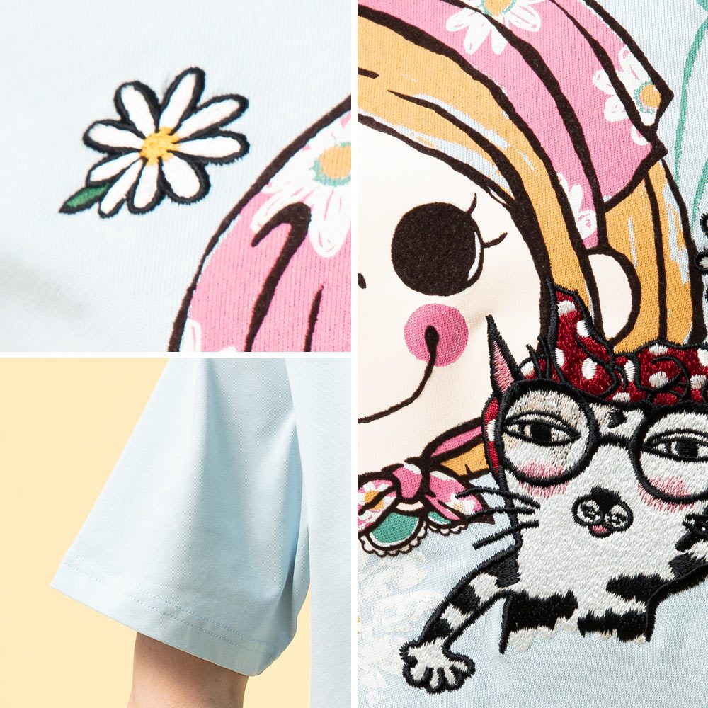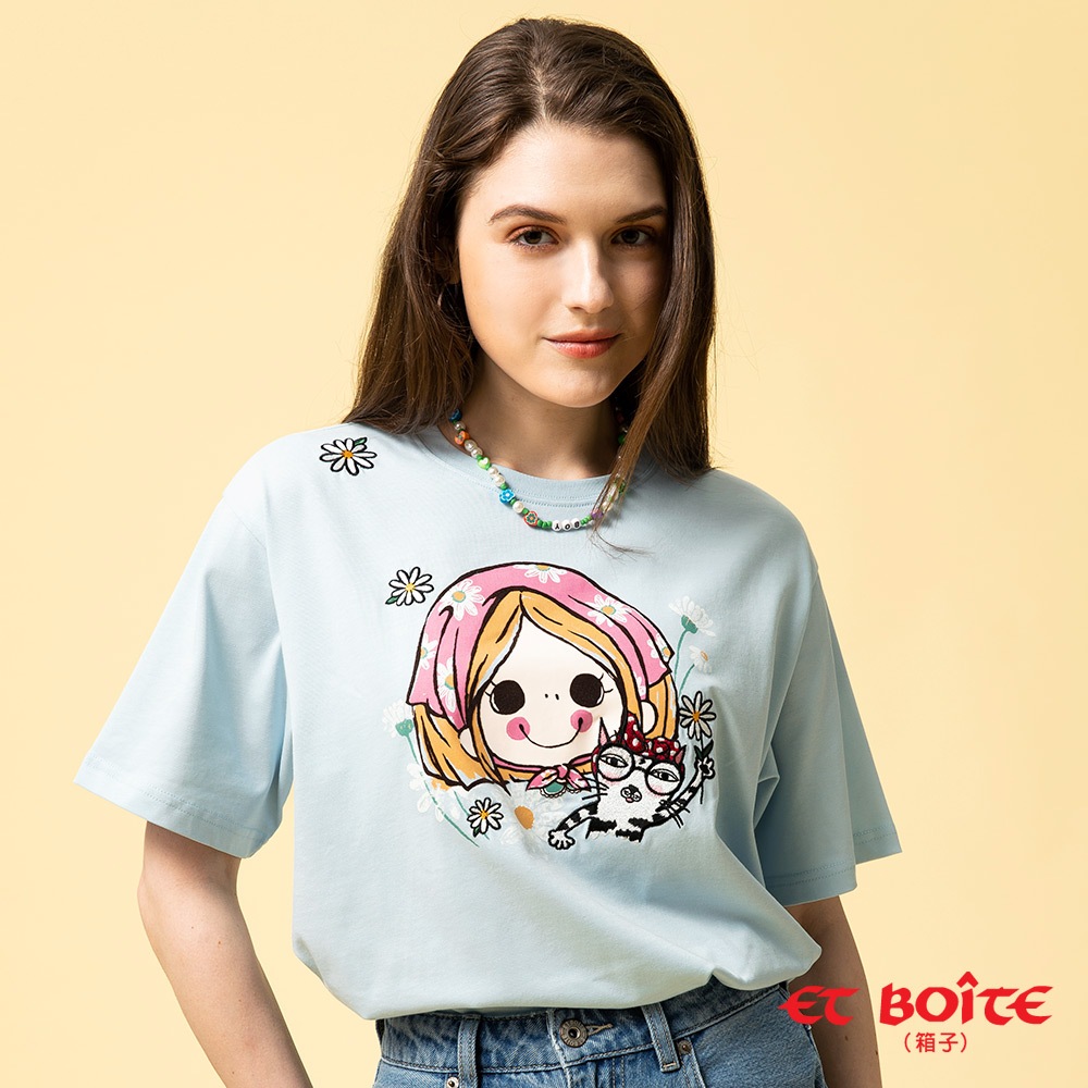 BLUE WAY ET BOiTE 箱子 – 女款 DORA田園貓落肩短TEE(淺藍)S|M|LT-shirtsBLUE WAY官方旗艦店