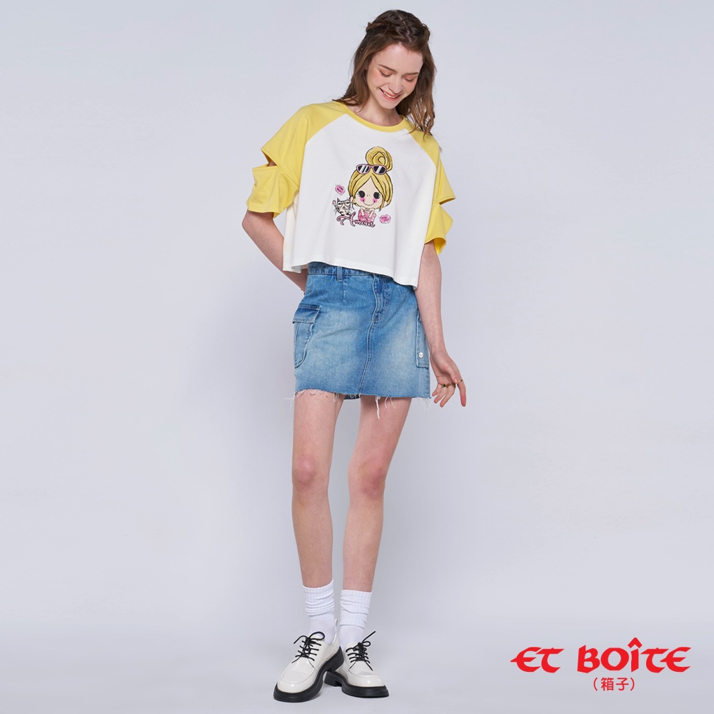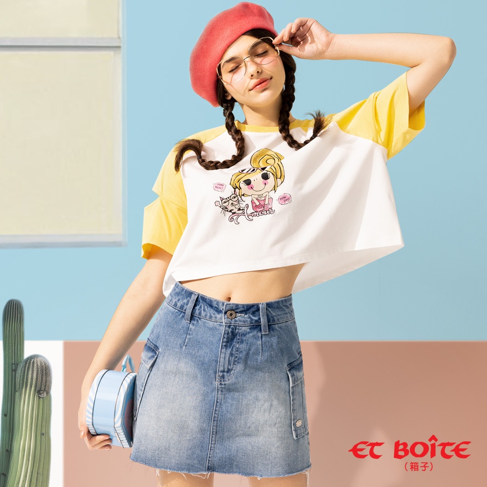 BLUE WAY ET BOiTE 箱子 – 女款 拼色開袖貓咪芭比短TEE