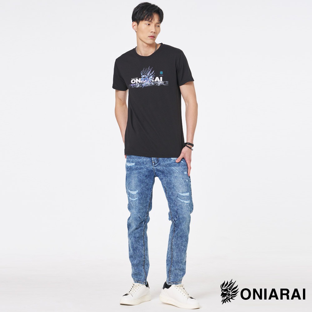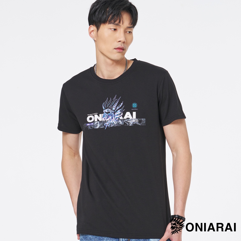 BLUE WAY 鬼洗 ONIARAI – 男款 賽博龐克科幻線條鬼頭短TEE(黑)M|L|XLT-ShirtsBLUE WAY官方旗艦店