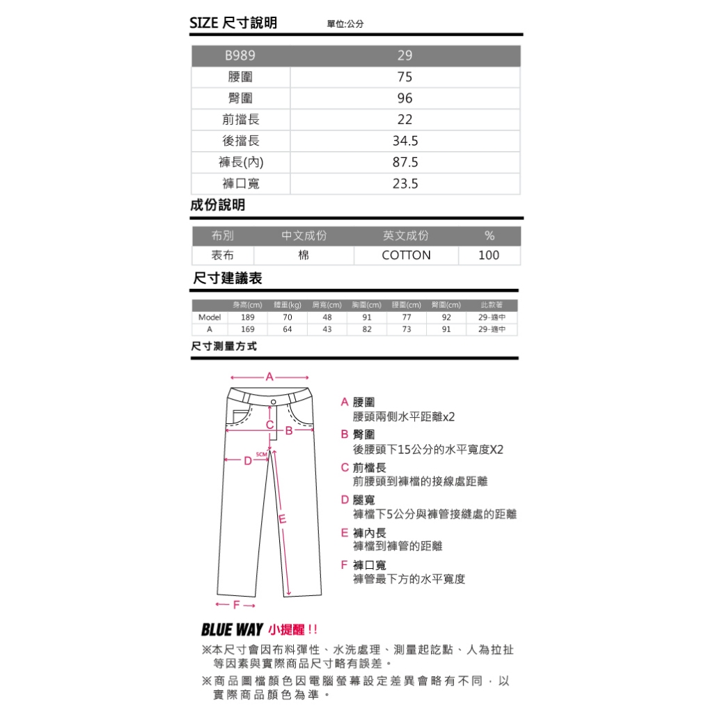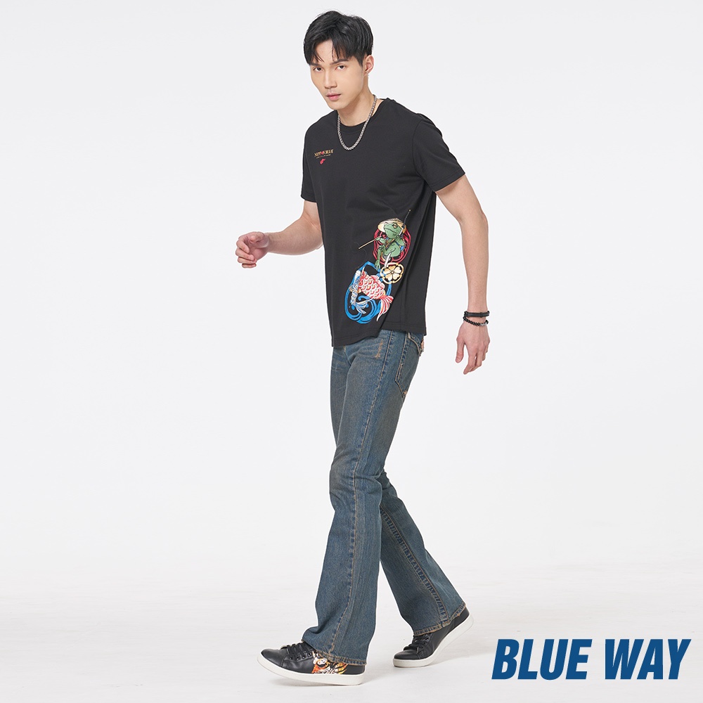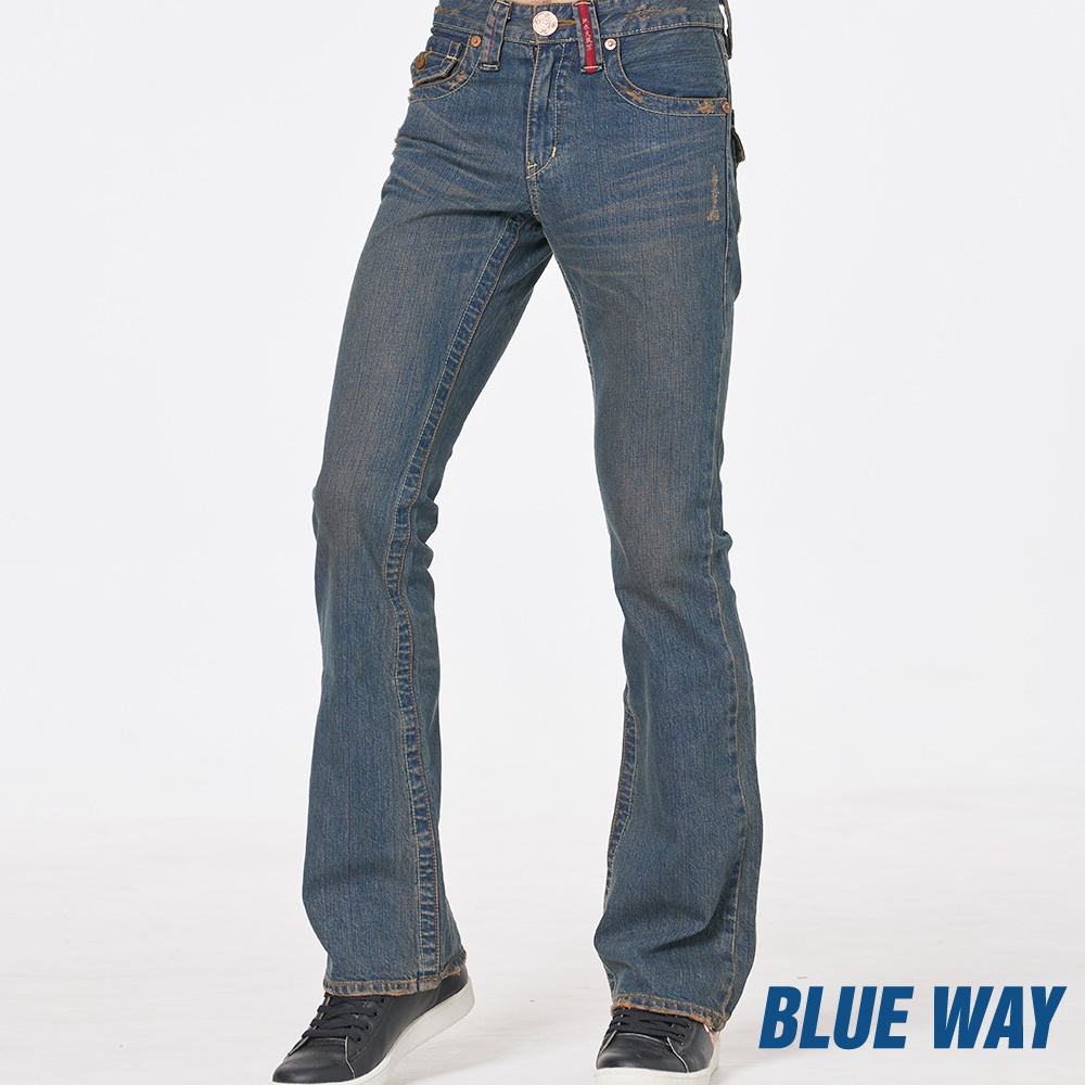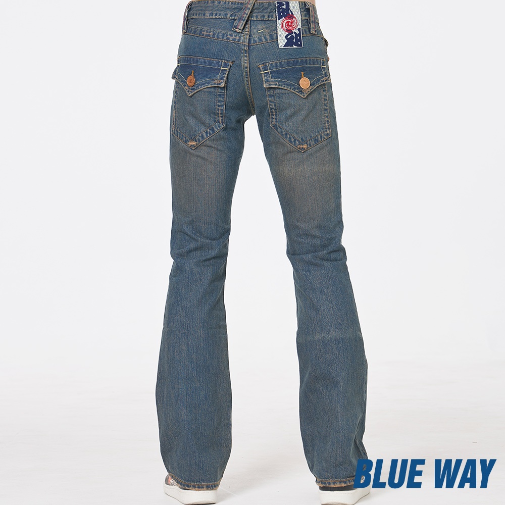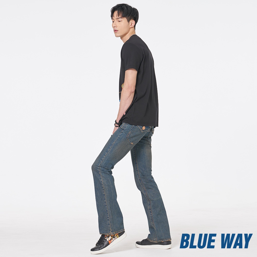 BLUE WAY – 男款 風袋蓋低腰丹寧靴型褲(29腰)29BLUE WAY官方旗艦店