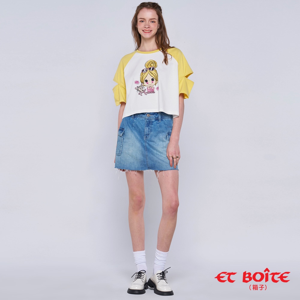 BLUE WAY ET BOiTE 箱子 – 女款 拼色開袖貓咪芭比短TEES|M|LT-shirtsBLUE WAY官方旗艦店