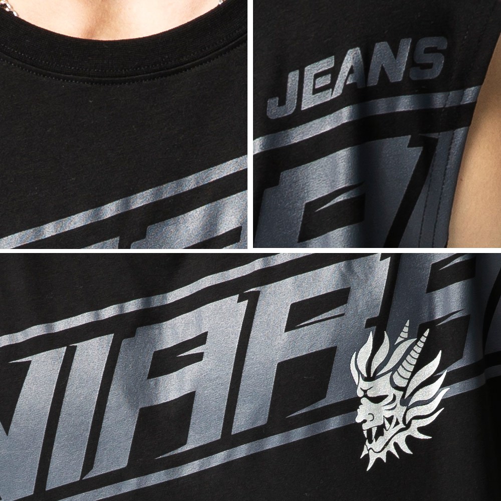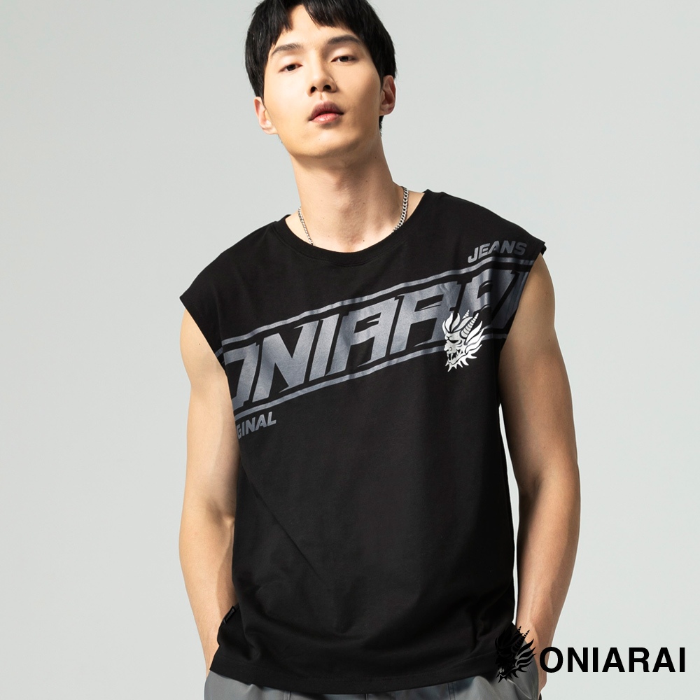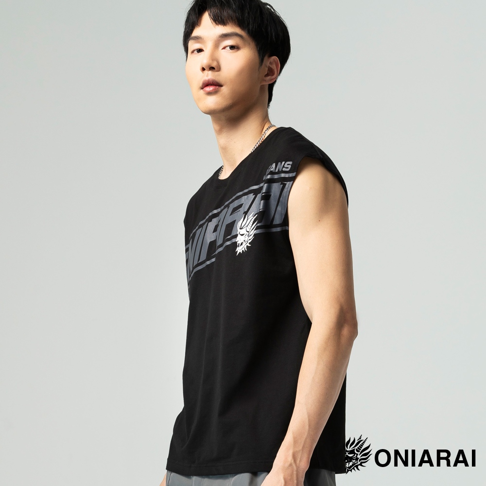 BLUE WAY 鬼洗 ONIARAI – 男款 潮流文字側鬼寬肩背心(黑)M|L|XL|3LVestsBLUE WAY官方旗艦店