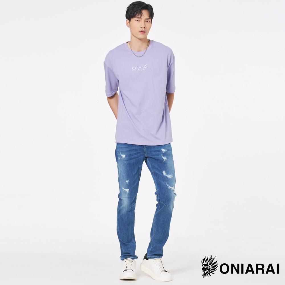 BLUE WAY 鬼洗 ONIARAI – 男款 黑魂重工LOGO落肩短TEE(紫)M|L|XLT-ShirtsBLUE WAY官方旗艦店