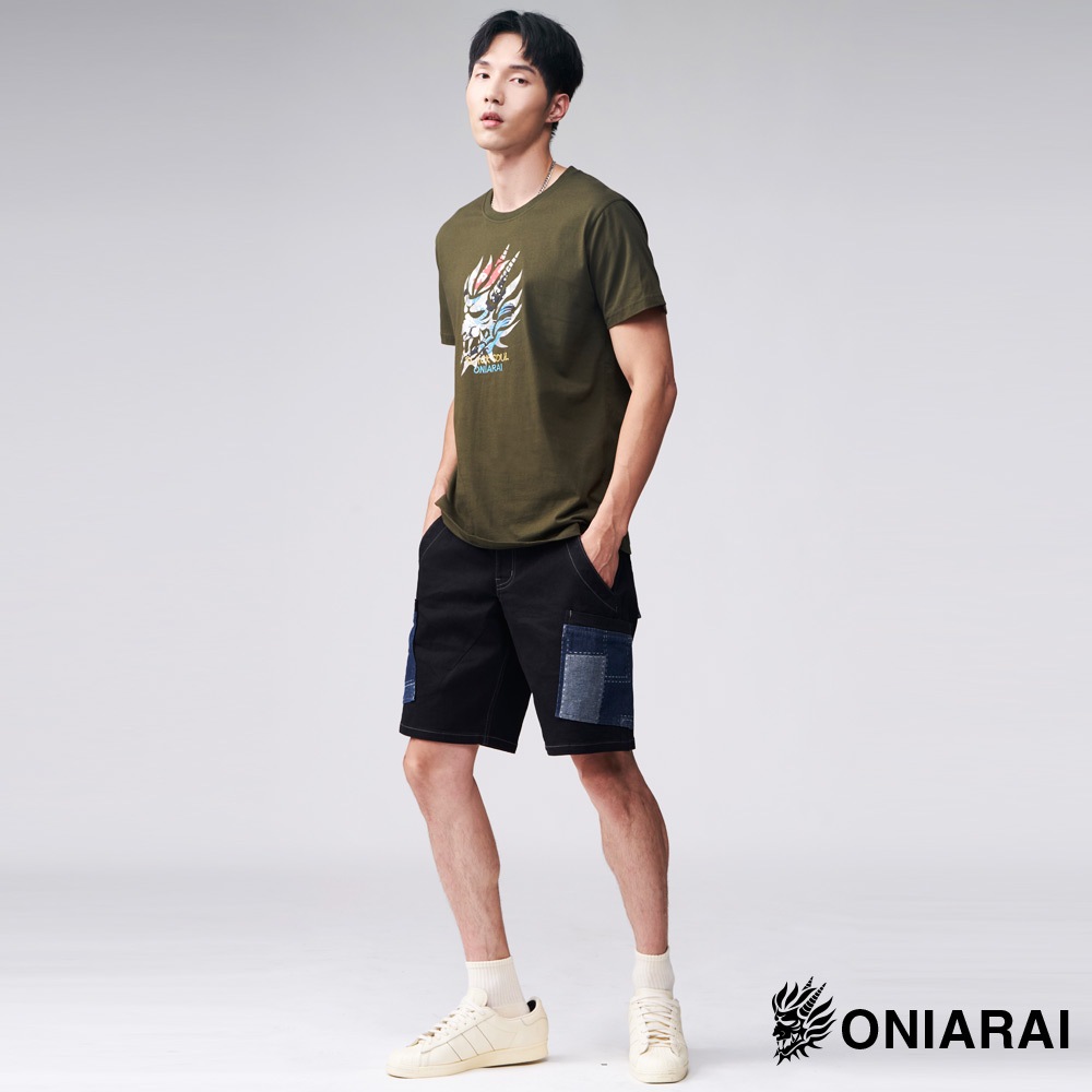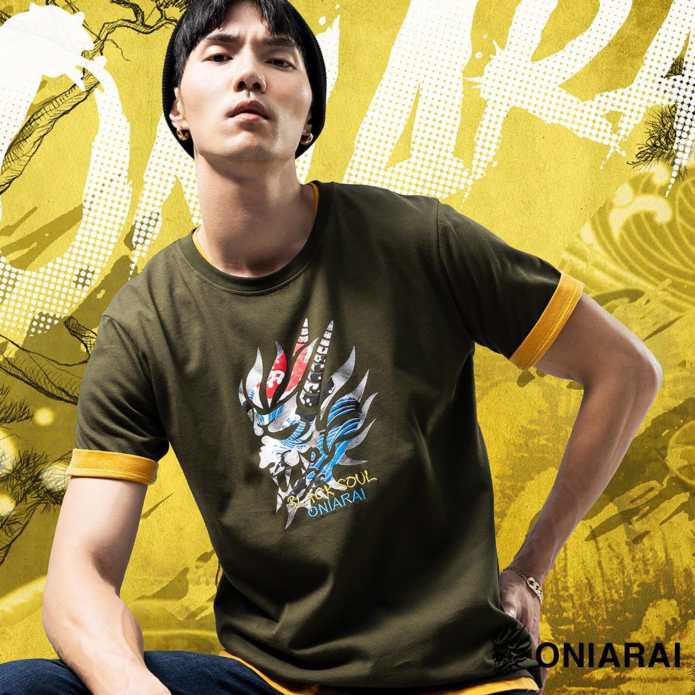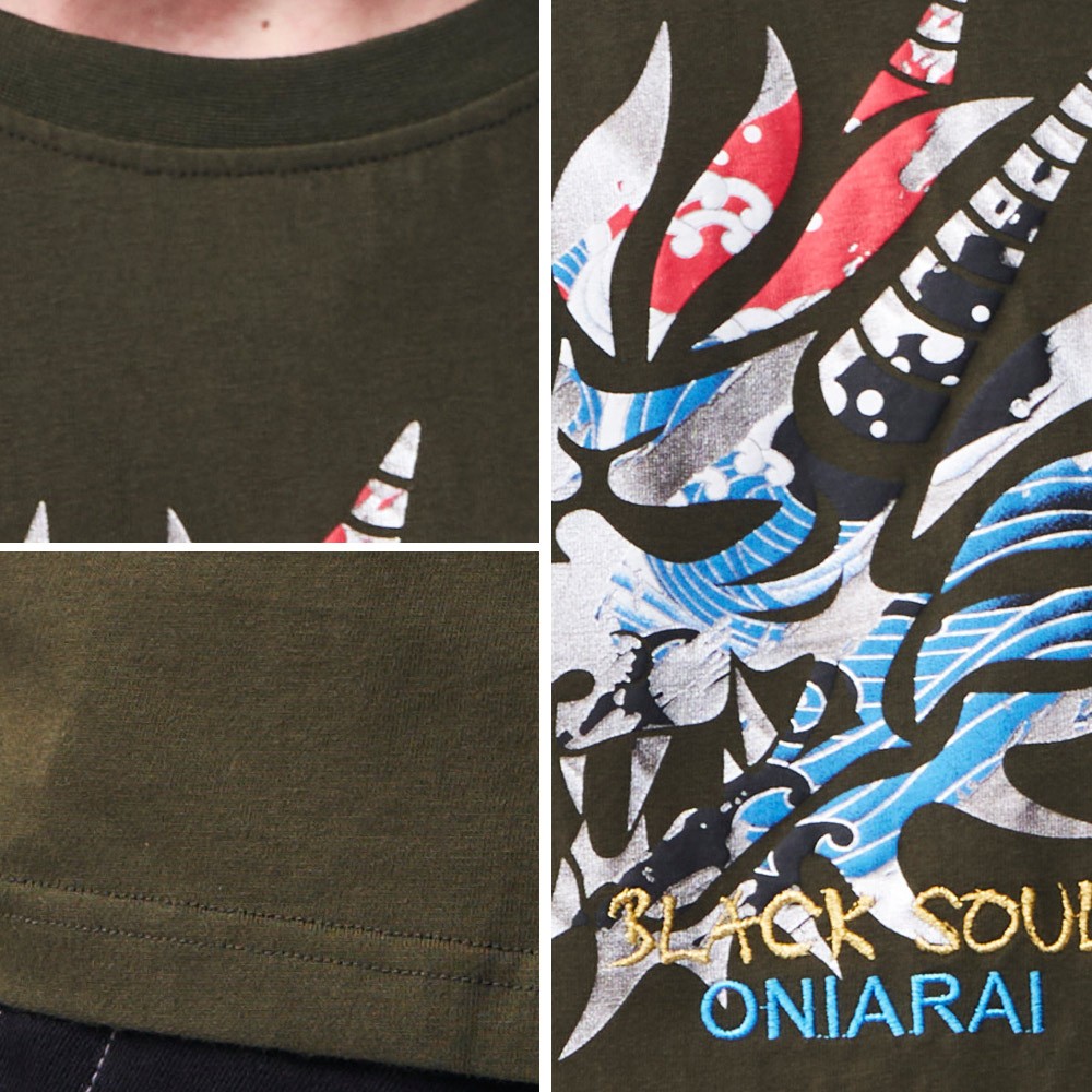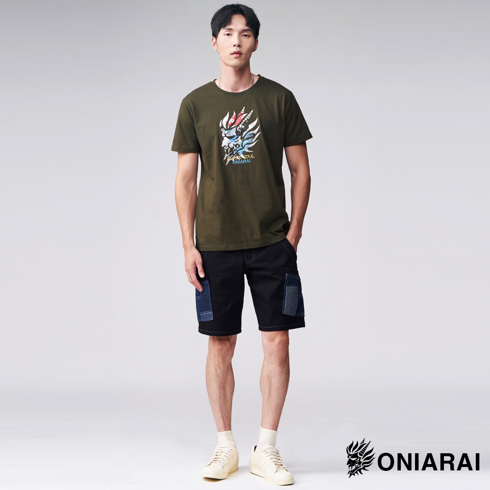 BLUE WAY 鬼洗 ONIARAI – 男款 經典鬼頭日式海浪短TEE(墨綠)