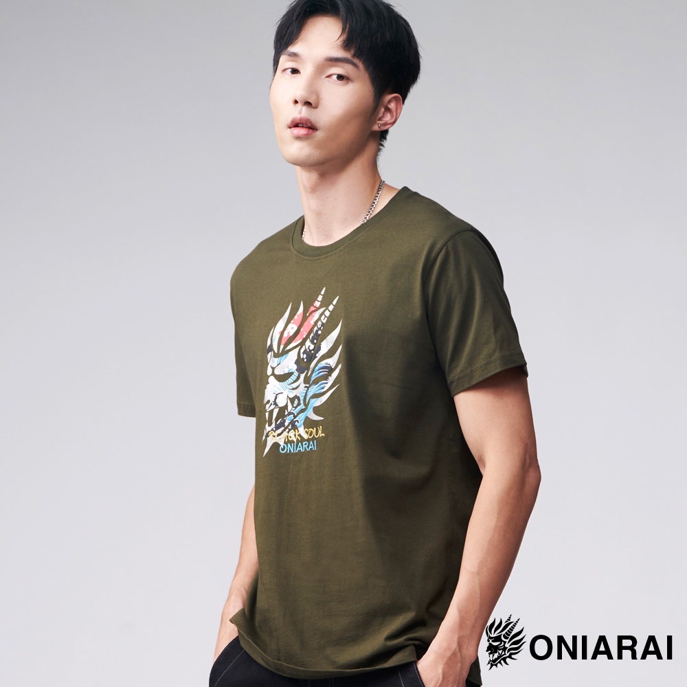 BLUE WAY 鬼洗 ONIARAI – 男款 經典鬼頭日式海浪短TEE(墨綠)XL|3L|M|LT-ShirtsBLUE WAY官方旗艦店