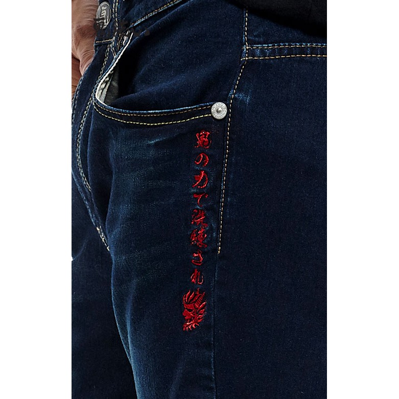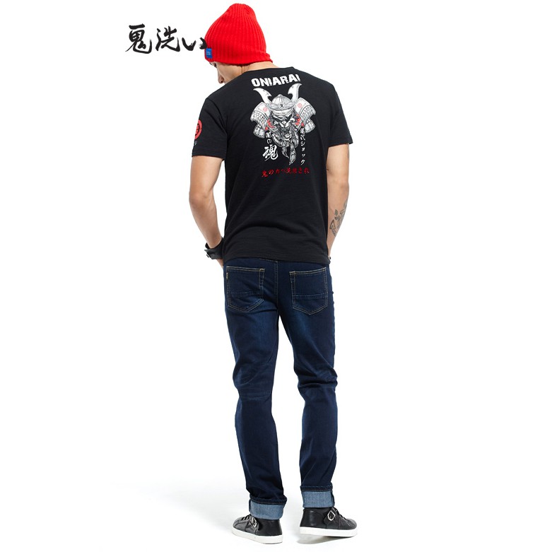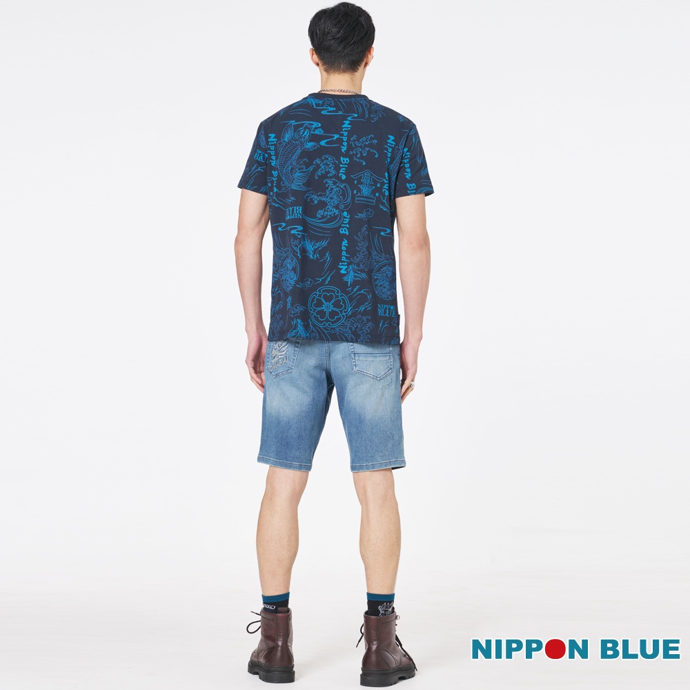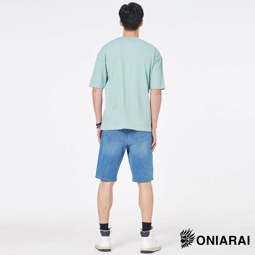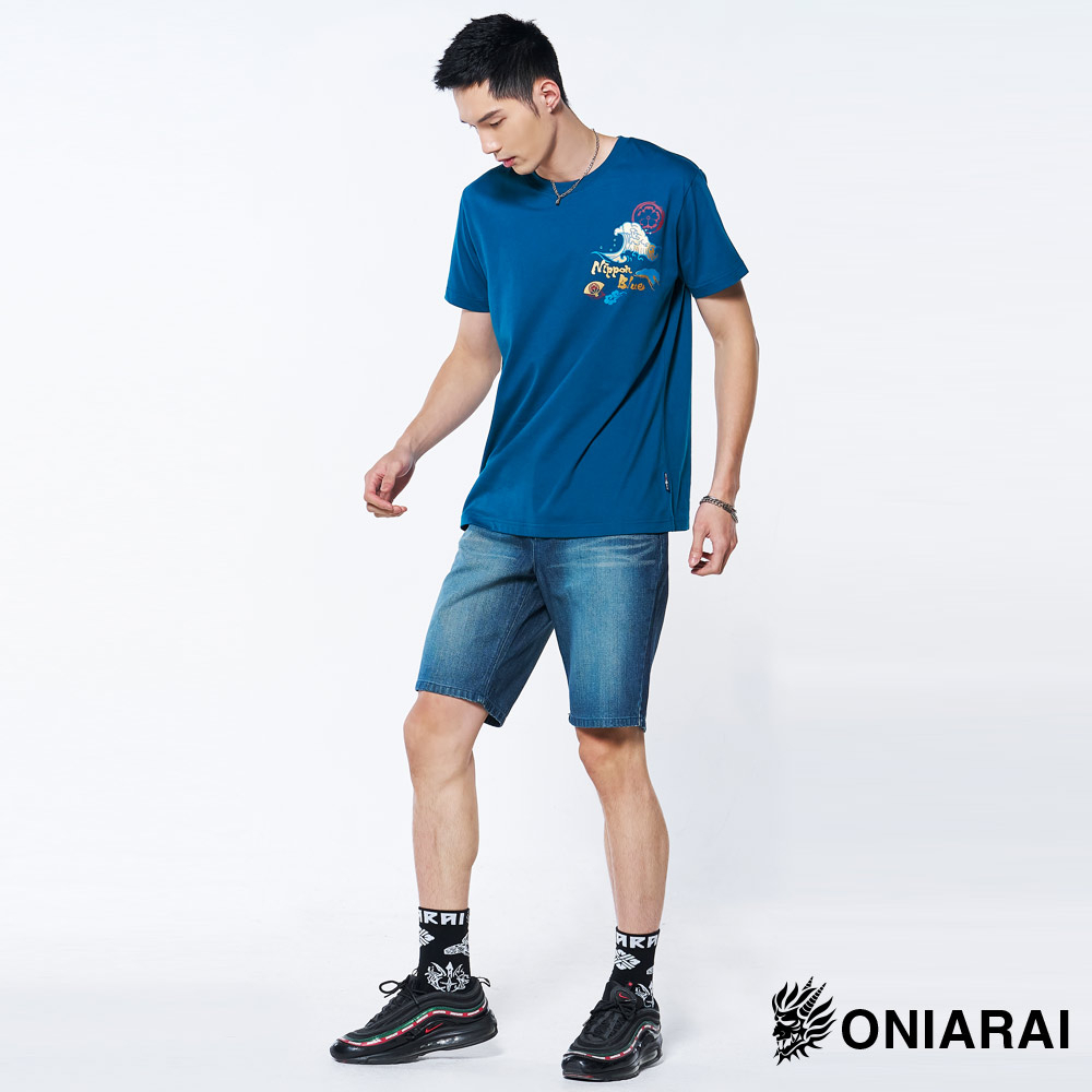 BLUE WAY 鬼洗 ONIARAI – 男款經典無彈小鬼頭繡花丹寧短褲(中藍)M|L|XL|3LBLUE WAY官方旗艦店
