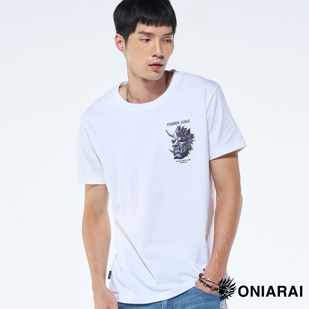 BLUE WAY 鬼洗 ONIARAI-男款 和藝術爆裂鬼面短TEE(白)M|L|XLT-ShirtsBLUE WAY官方旗艦店