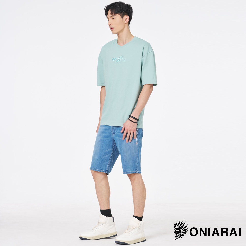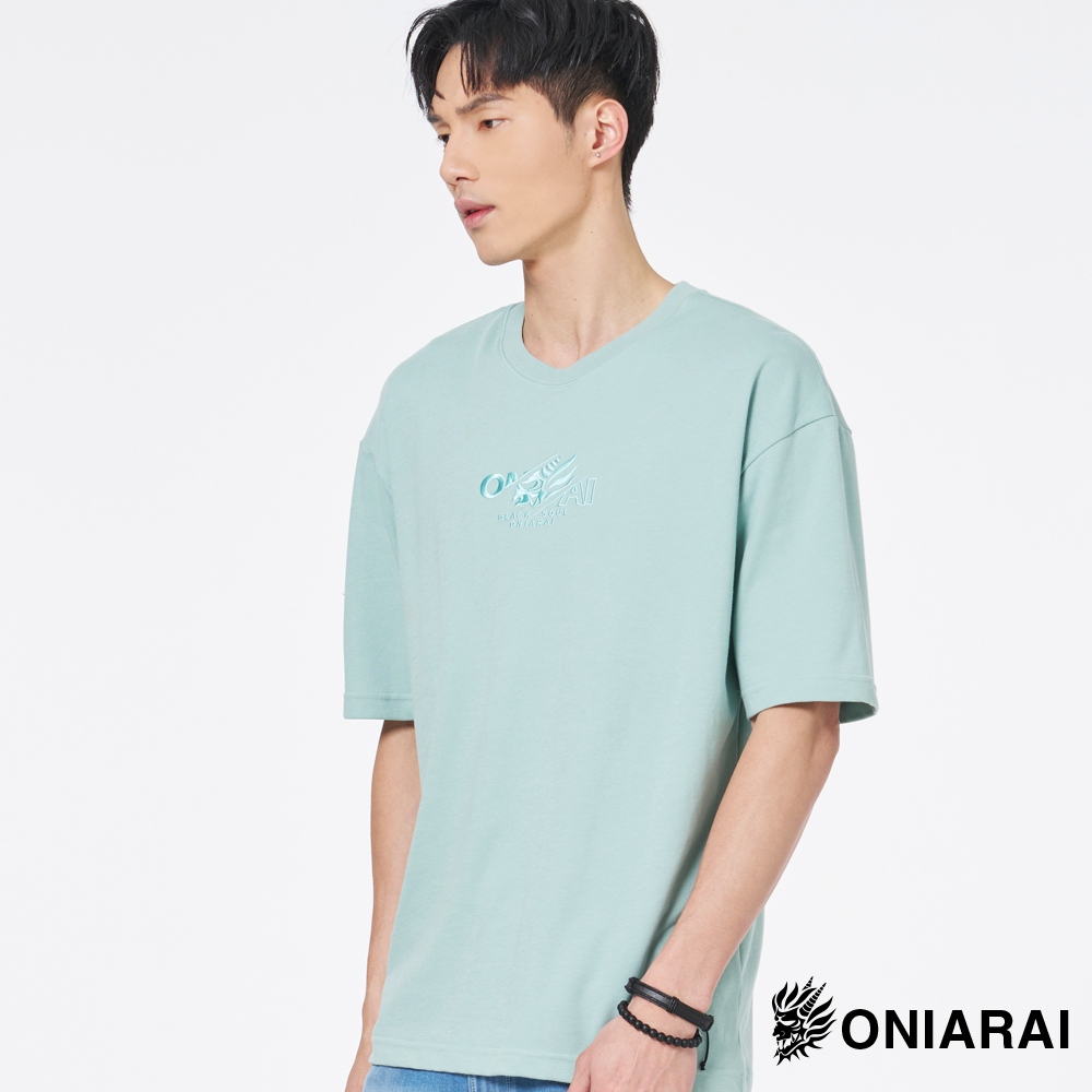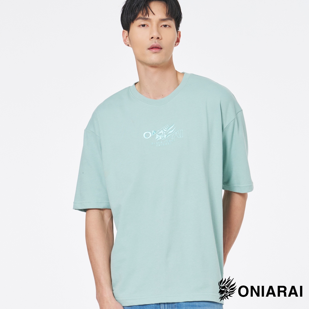 BLUE WAY 鬼洗 ONIARAI – 男款 黑魂重工LOGO落肩短TEE(淺綠)M|L|XLT-ShirtsBLUE WAY官方旗艦店