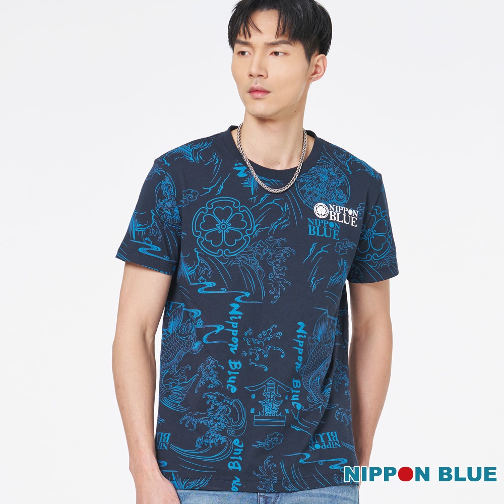 BLUE WAY 日本藍 – 男款 日式設計滿版短TEEM|L|XLT-ShirtsBLUE WAY官方旗艦店