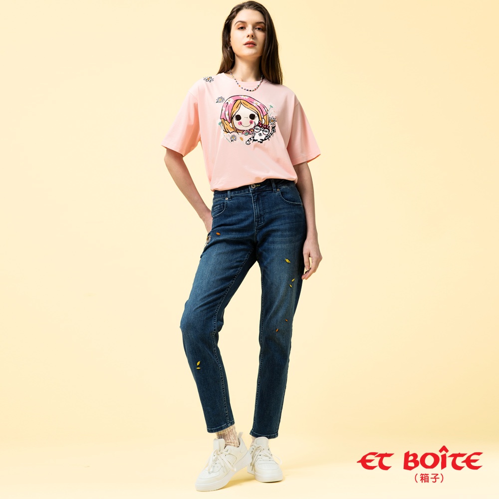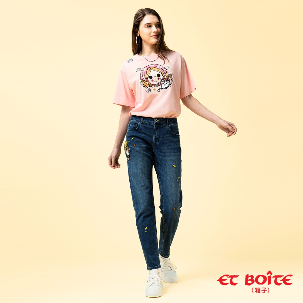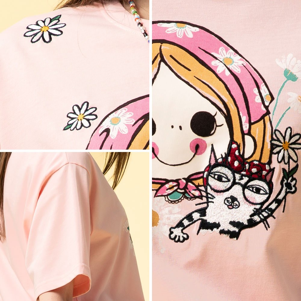 BLUE WAY ET BOiTE 箱子 – 女款 DORA田園貓落肩短TEE(淺粉)L|S|MT-shirtsBLUE WAY官方旗艦店