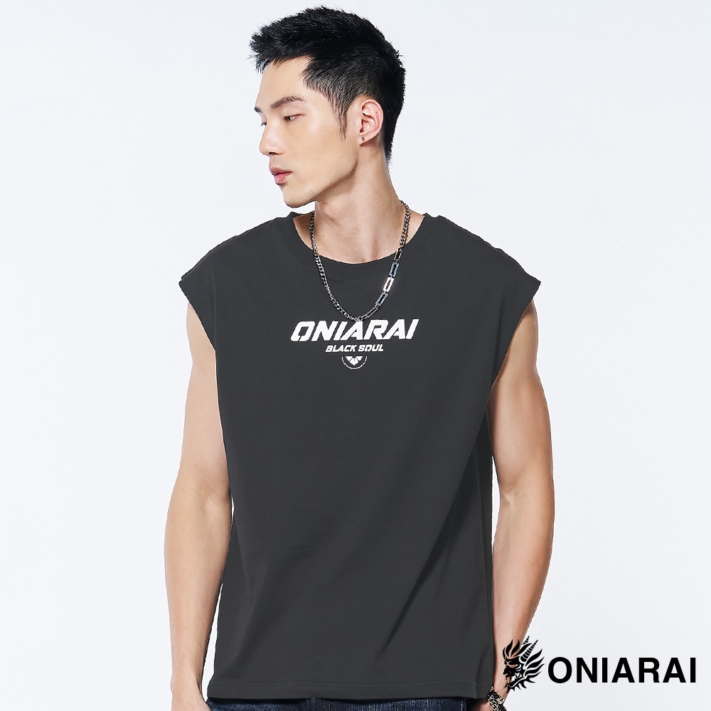 BLUE WAY 鬼洗 ONIARAI – 潮流文字寬肩背心(深灰)/網路獨家L|XLTanksBLUE WAY官方旗艦店