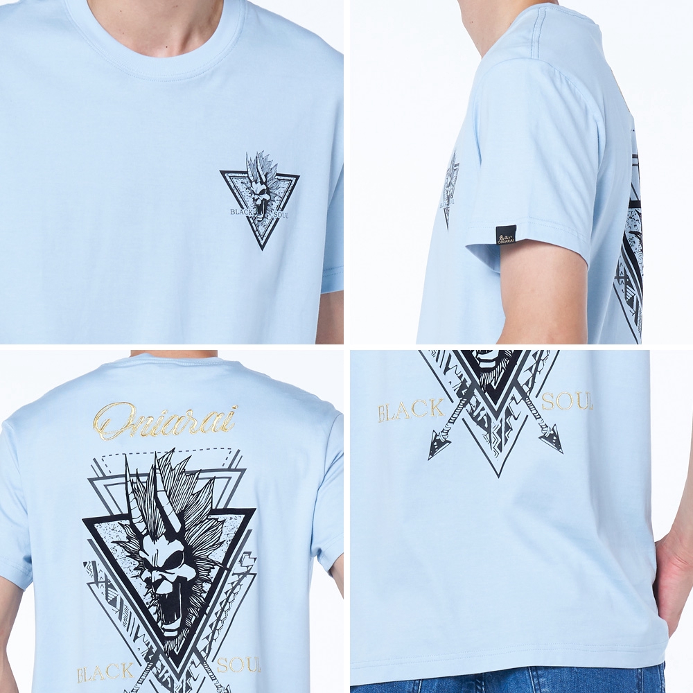 BLUE WAY 鬼洗 ONIARAI-金屬黑魂-三角幻境爆裂鬼短TEE(藍)/00917