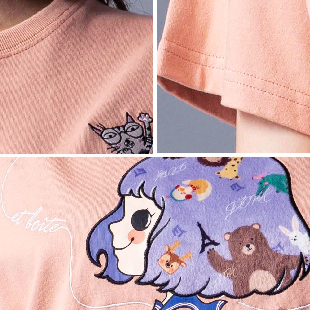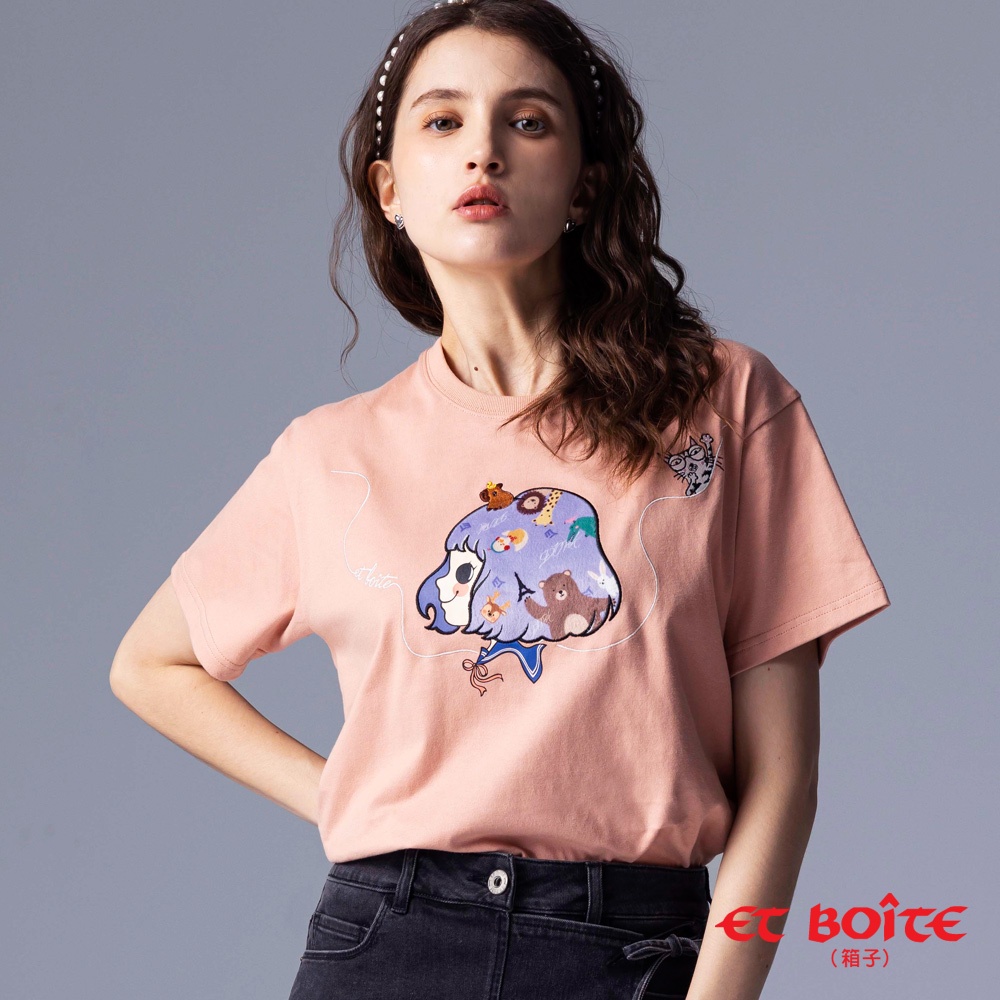 BLUE WAY ET BOiTE 箱子 – 女款 DORA娃娃頭貼布繡落肩短TEE(粉)L|S|MT-shirtsBLUE WAY官方旗艦店