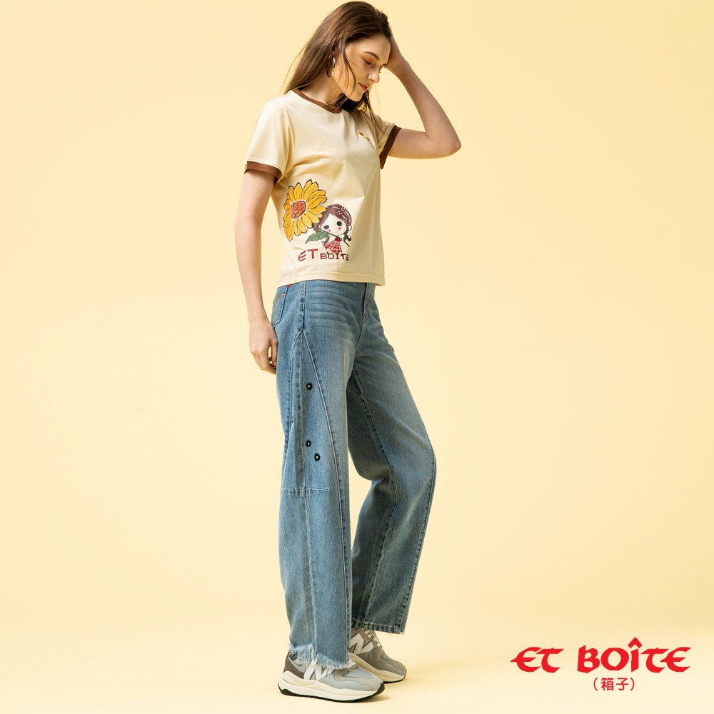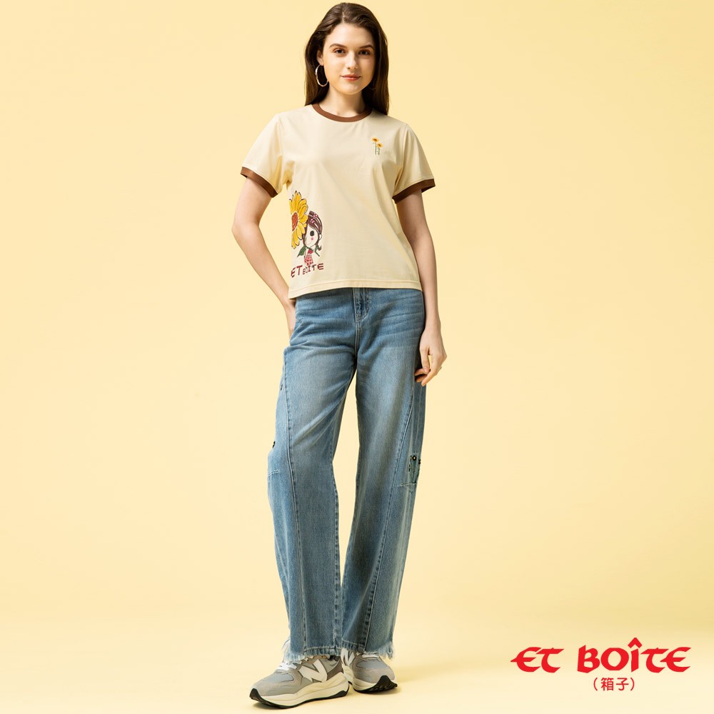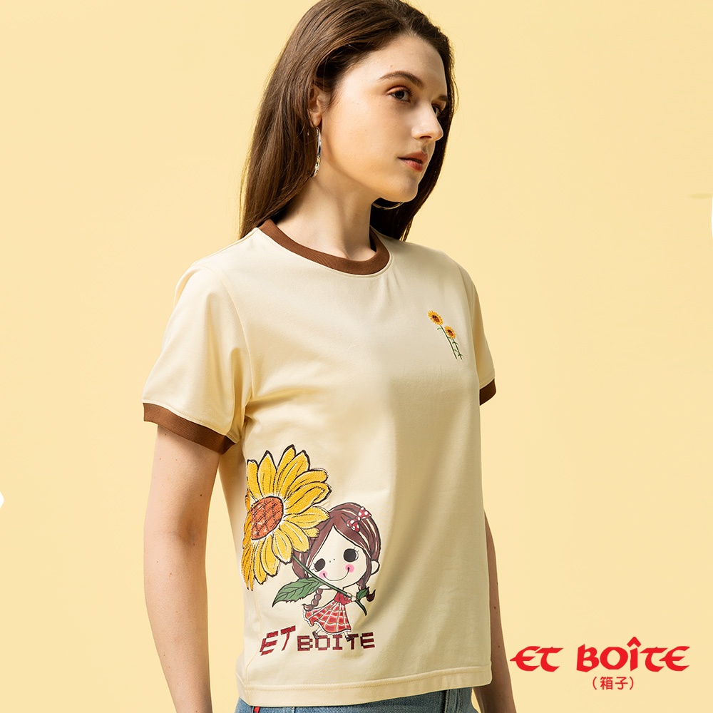 BLUE WAY ET BOiTE 箱子 – 女款 DORA向日葵撞色涼感短TEE(淺卡其)M|L|ST-shirtsBLUE WAY官方旗艦店