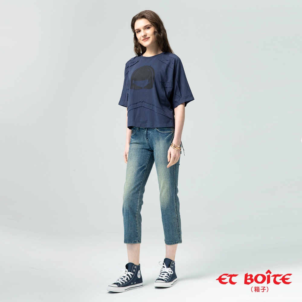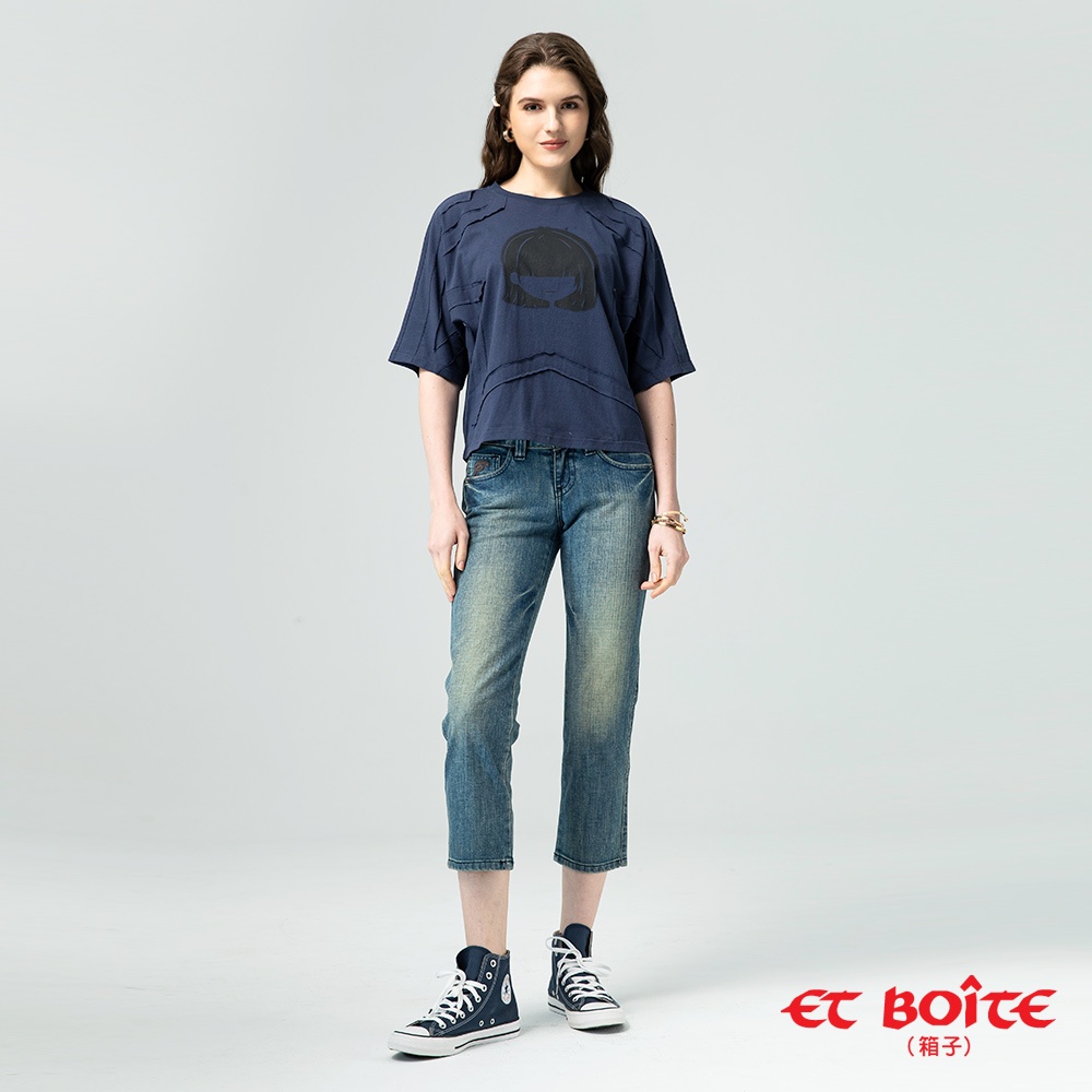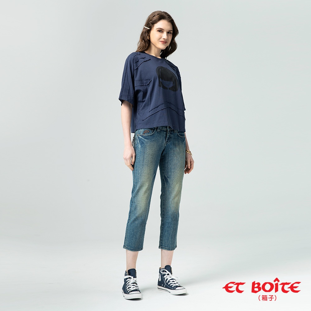 BLUE WAY ET BOiTE 箱子-補釘刷破高腰男友褲(深藍)S|M|L|XLBLUE WAY官方旗艦店