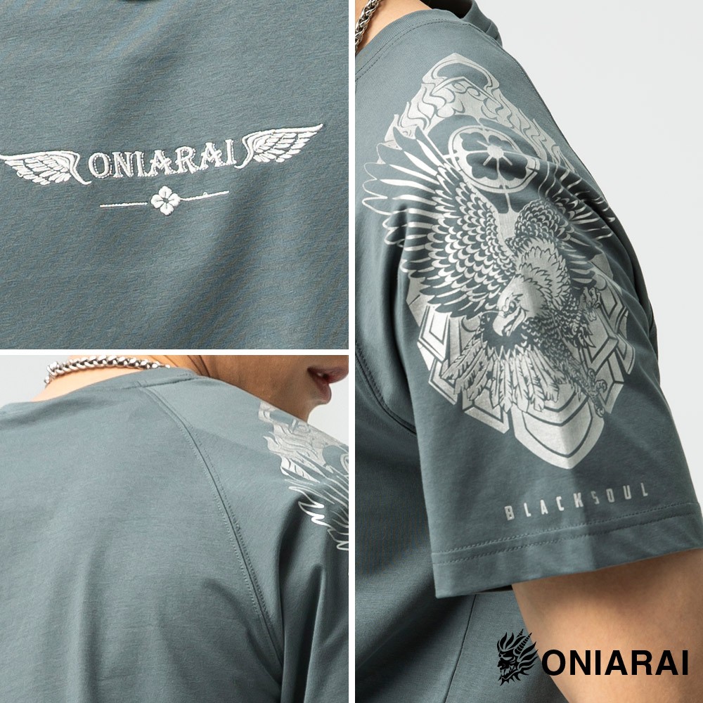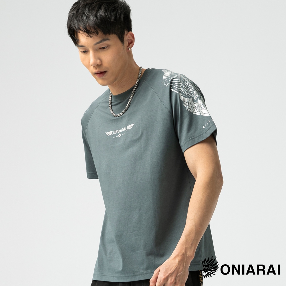 BLUE WAY 鬼洗 ONIARAI – 男款 都市遊俠飛鷹肩甲涼感插肩袖短TEE(綠灰)/網路獨家3L|M|L|XLT-ShirtsBLUE WAY官方旗艦店