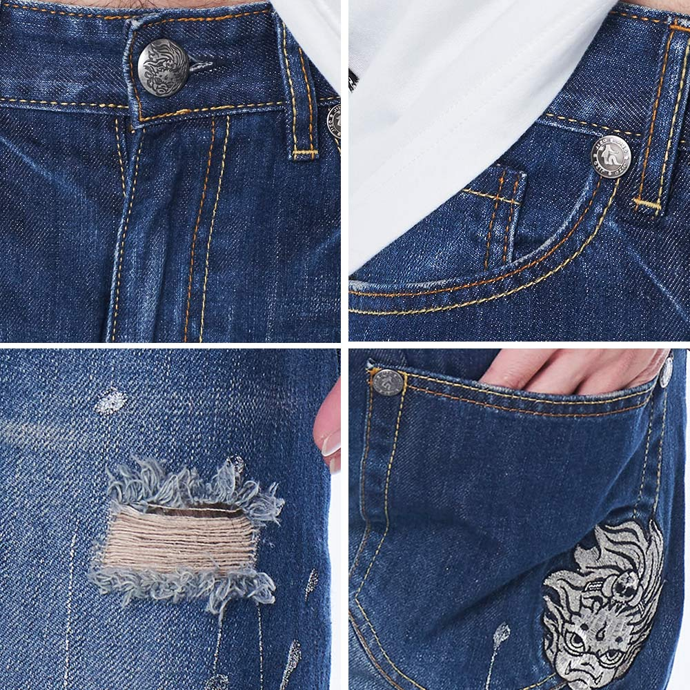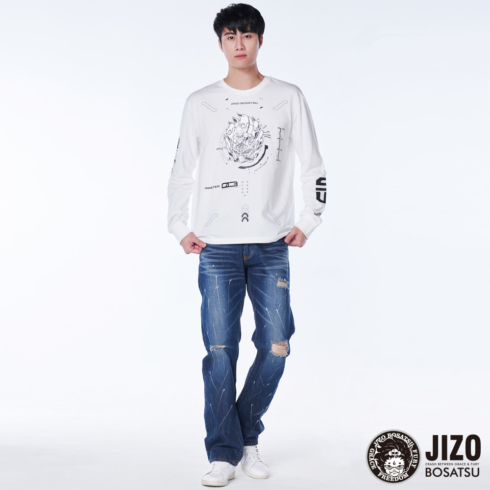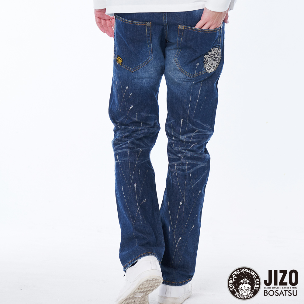 BLUE WAY 地藏小王 – 男款 地藏單頭刷破丹寧低腰直筒褲30|31BLUE WAY官方旗艦店