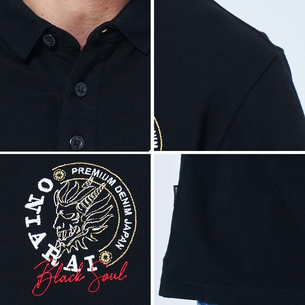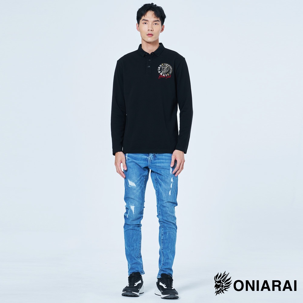 BLUE WAY 鬼洗 ONIARAI – 男款 潮流側鬼文字繡花長袖POLO衫(黑)M|L|XLPolo ShirtsBLUE WAY官方旗艦店