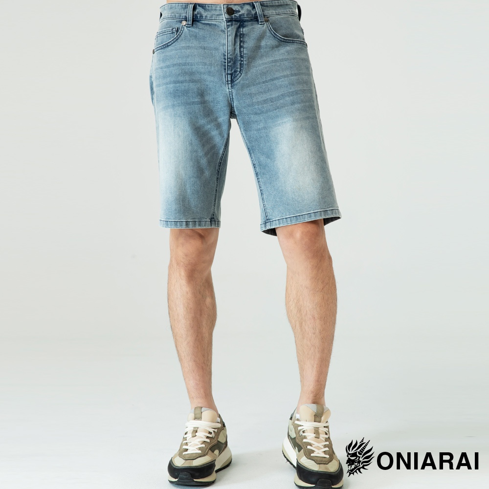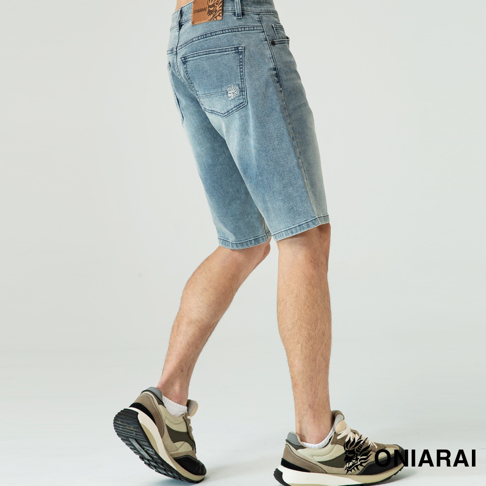 BLUE WAY 鬼洗 ONIARAI – 男款 冰氧鋅玉彈性丹寧短褲(復古淺)M|L|XL|3LBLUE WAY官方旗艦店