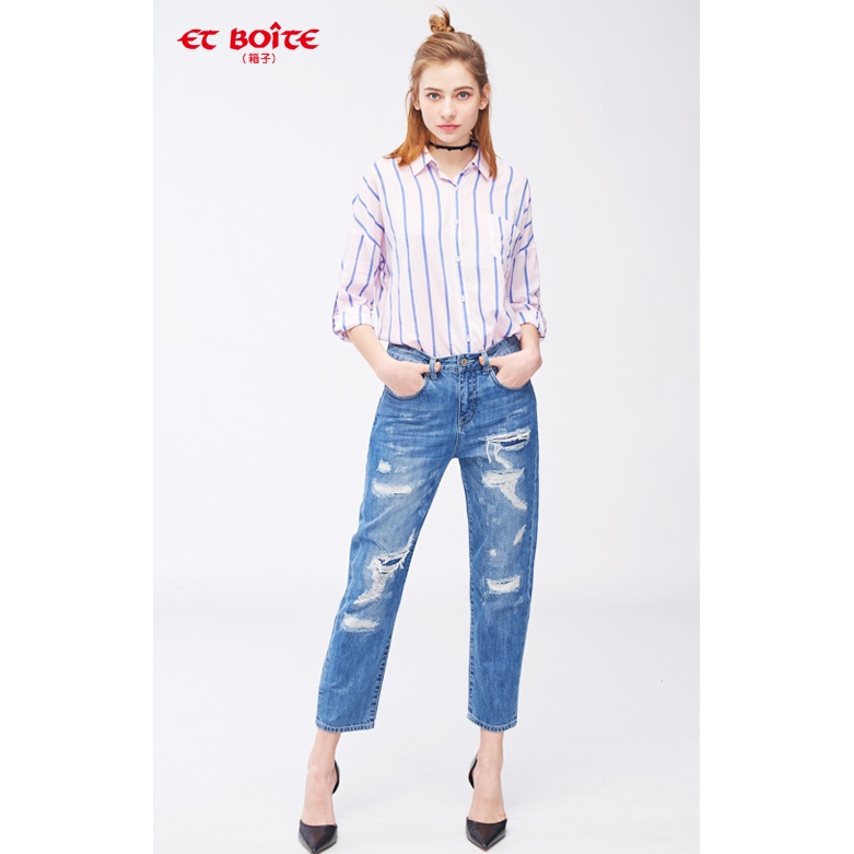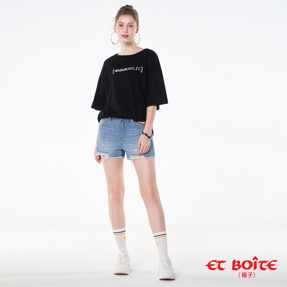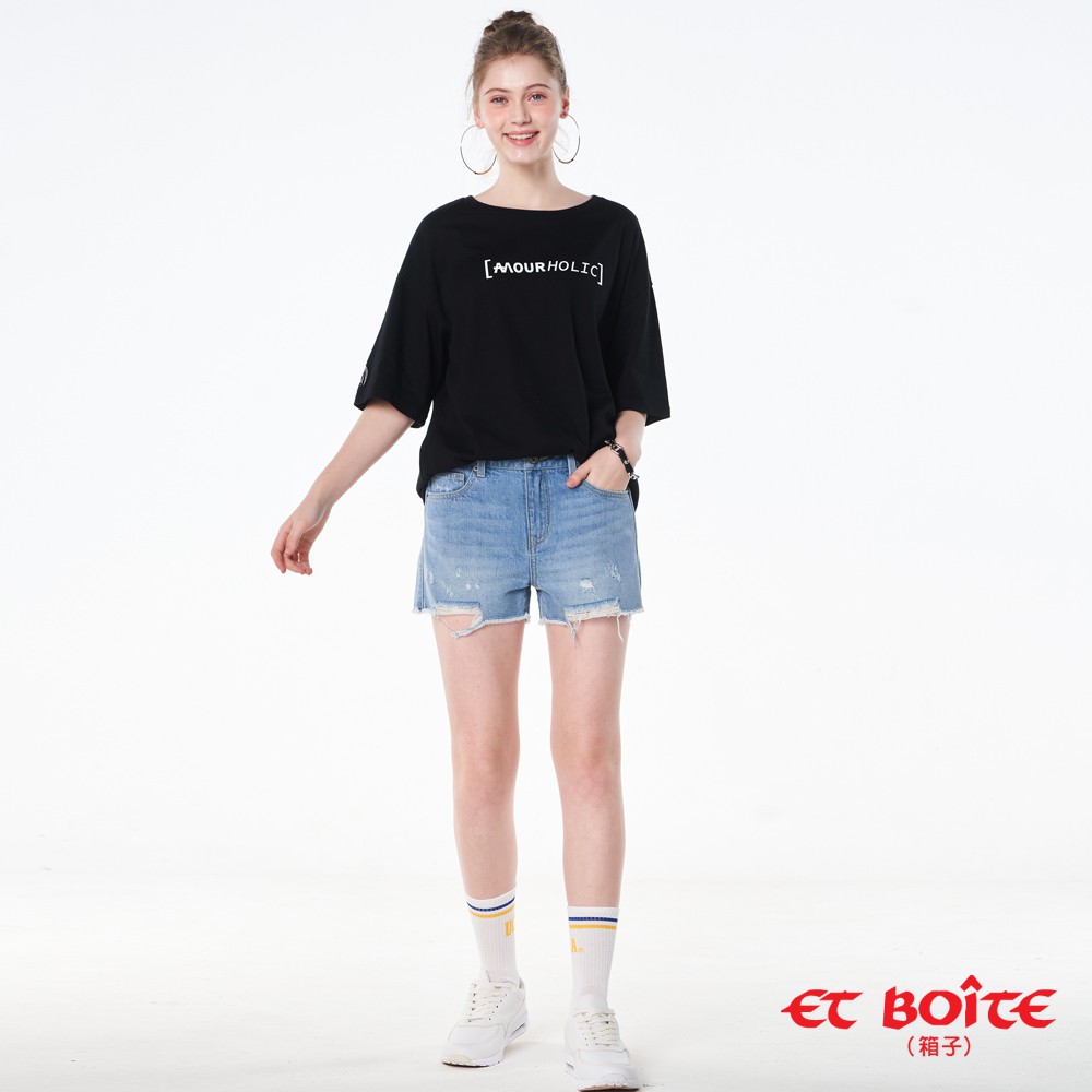 BLUE WAY ET BOiTE 箱子-高腰刷破短褲(淺藍)