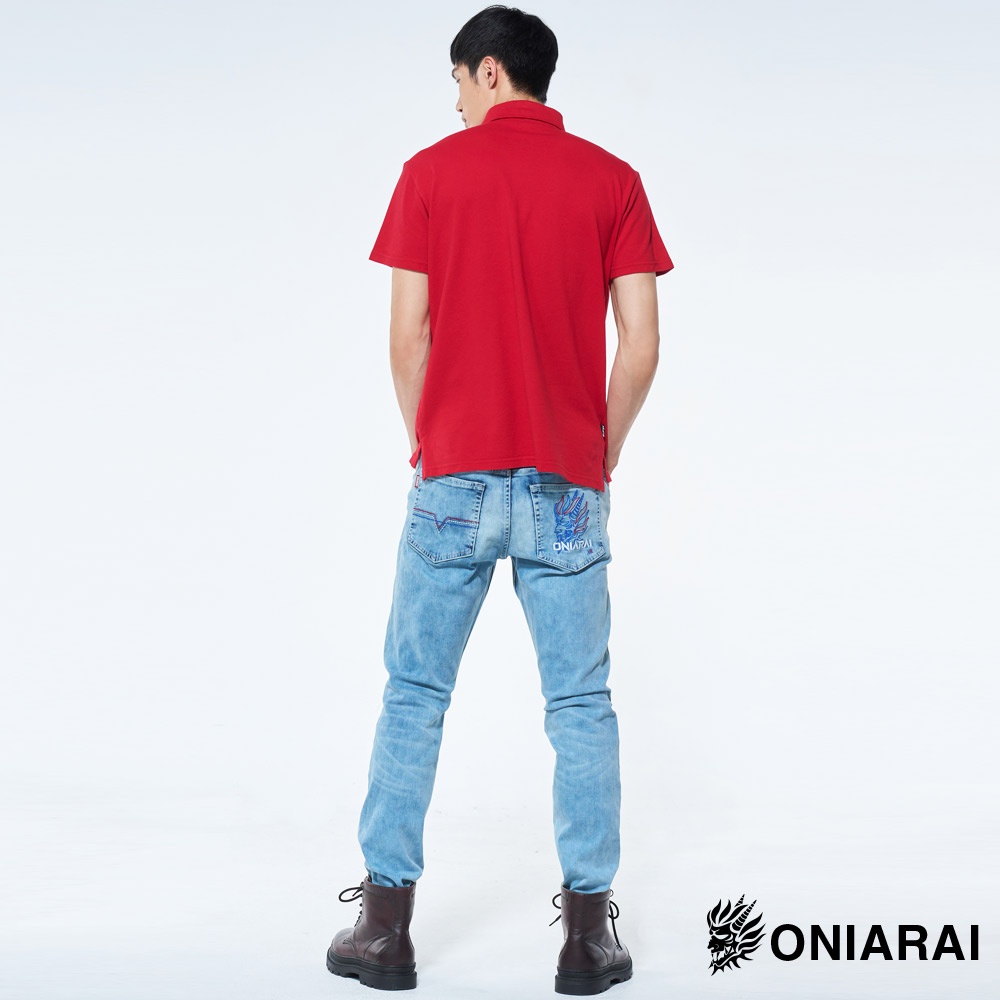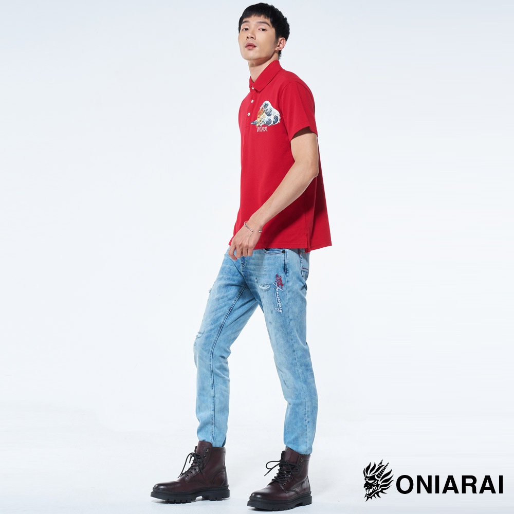 BLUE WAY 鬼洗 ONIARAI- 男款 沖浪裏鬼頭繡花短袖POLO衫(紅)M|L|XLPolo ShirtsBLUE WAY官方旗艦店