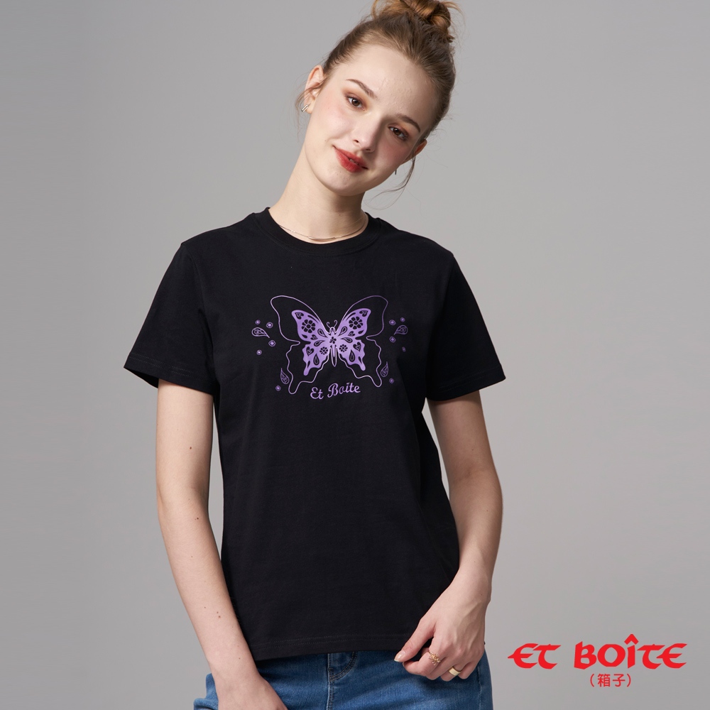 BLUE WAY ET BOiTE 箱子 – 女款 蝴蝶飛來短TEE(黑)S|M|LT-shirtsBLUE WAY官方旗艦店