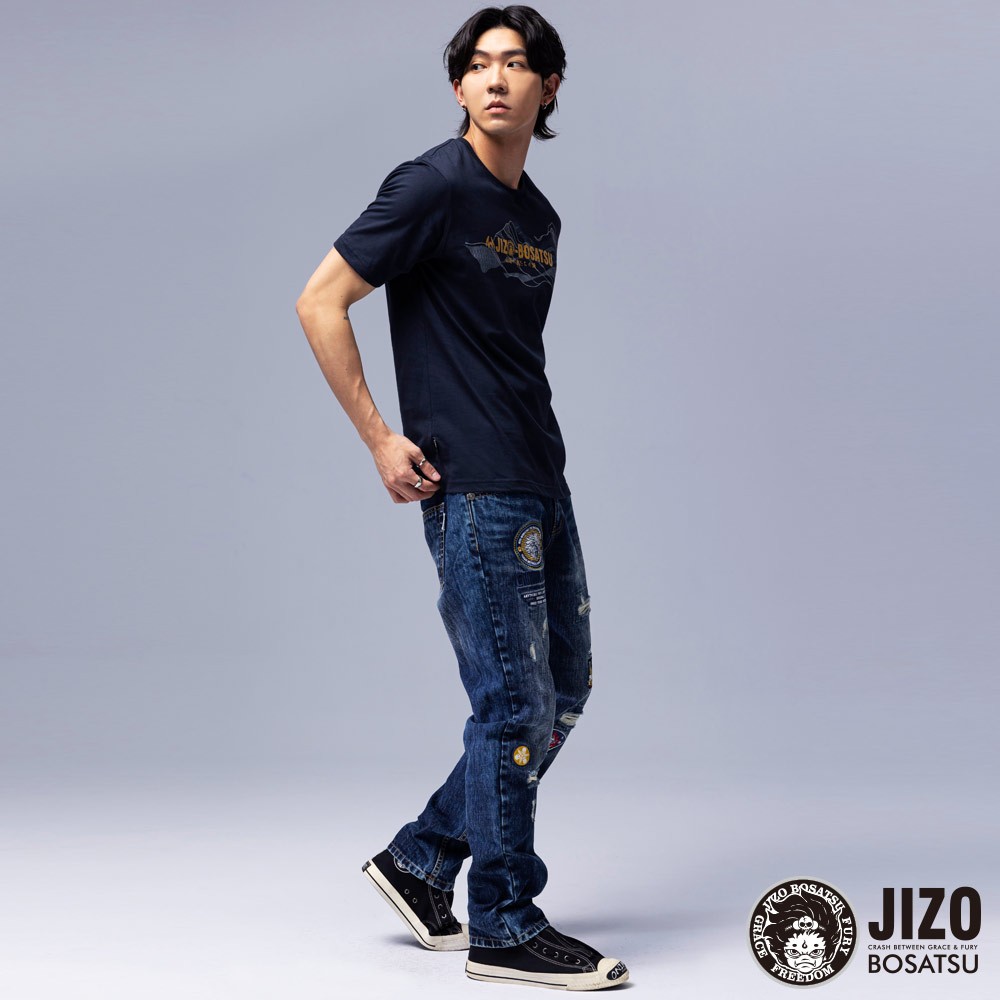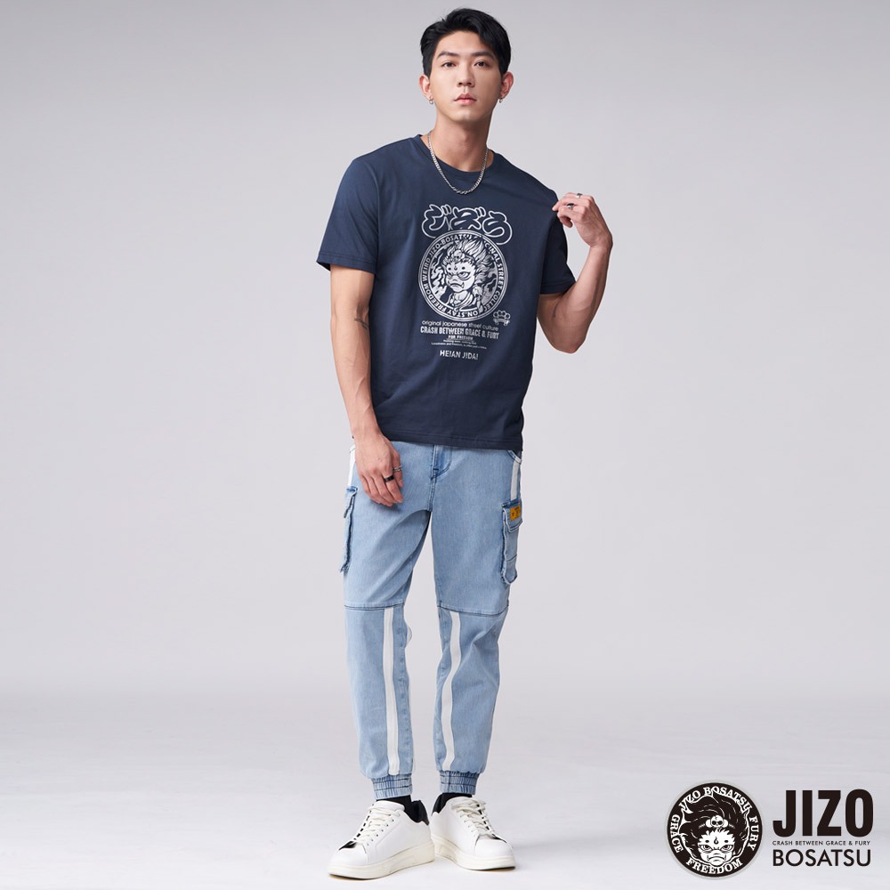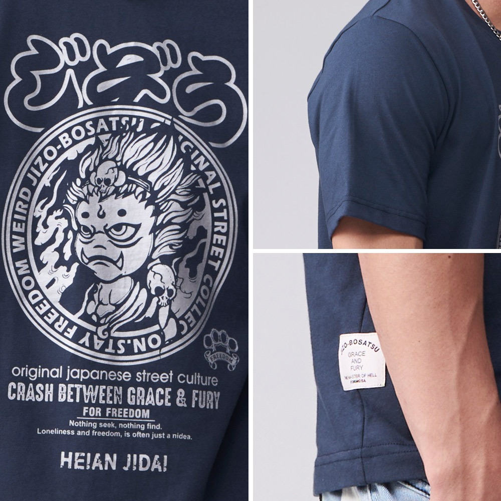 BLUE WAY 地藏小王 – 男款 仿箔日式LOGO短TEE(丈青)XL|3L|M|LT-ShirtsBLUE WAY官方旗艦店