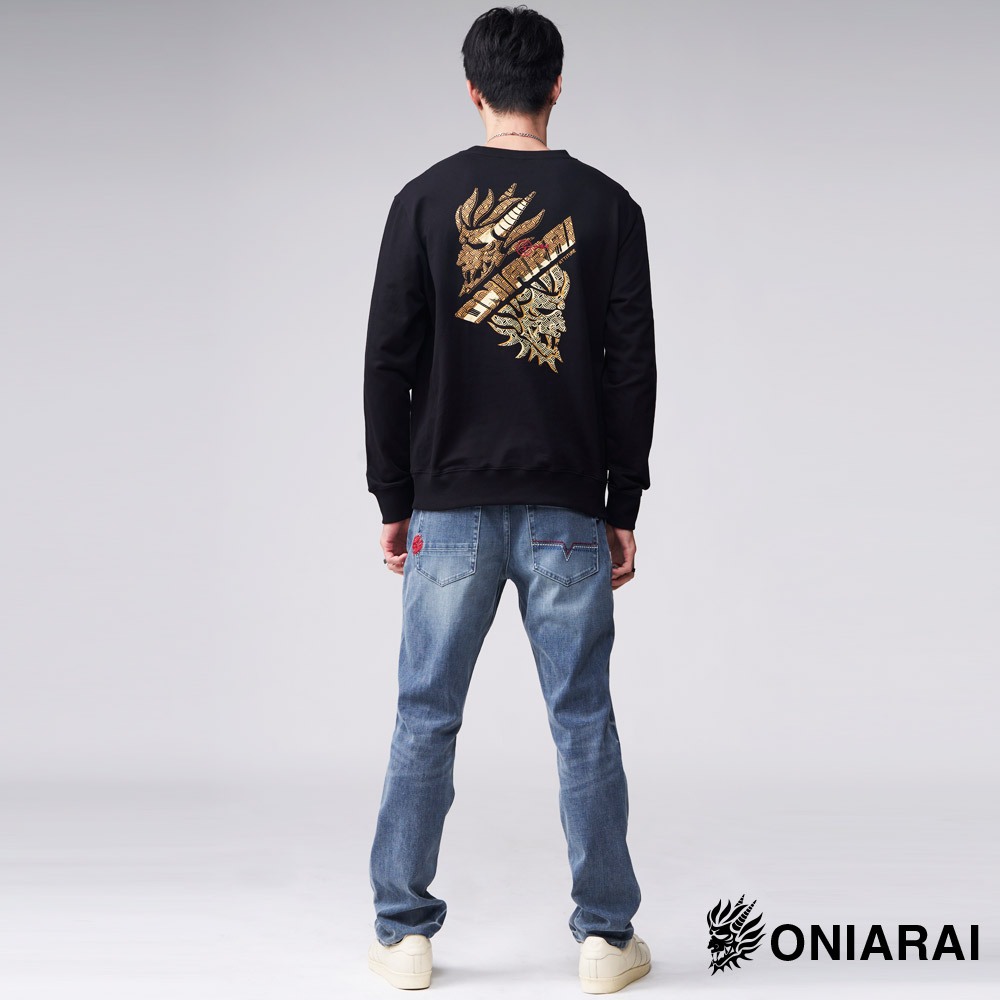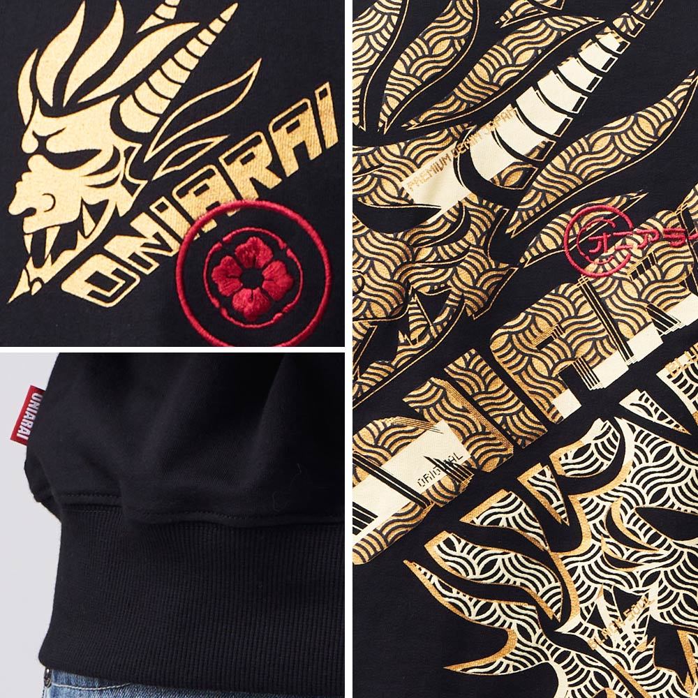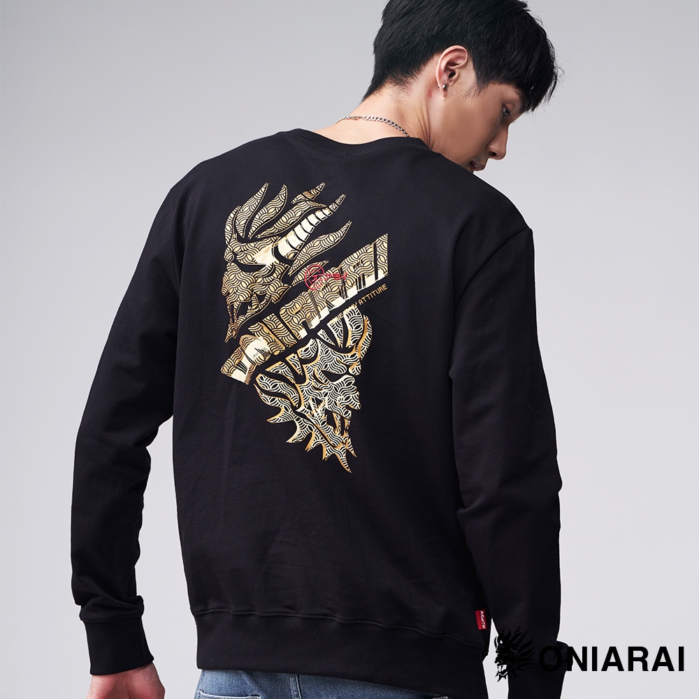 BLUE WAY 鬼洗 ONIARAI – 男款 潮流金屬鬼頭文字大學長TEE(黑)M|L|XL|3LSweatshirtsBLUE WAY官方旗艦店