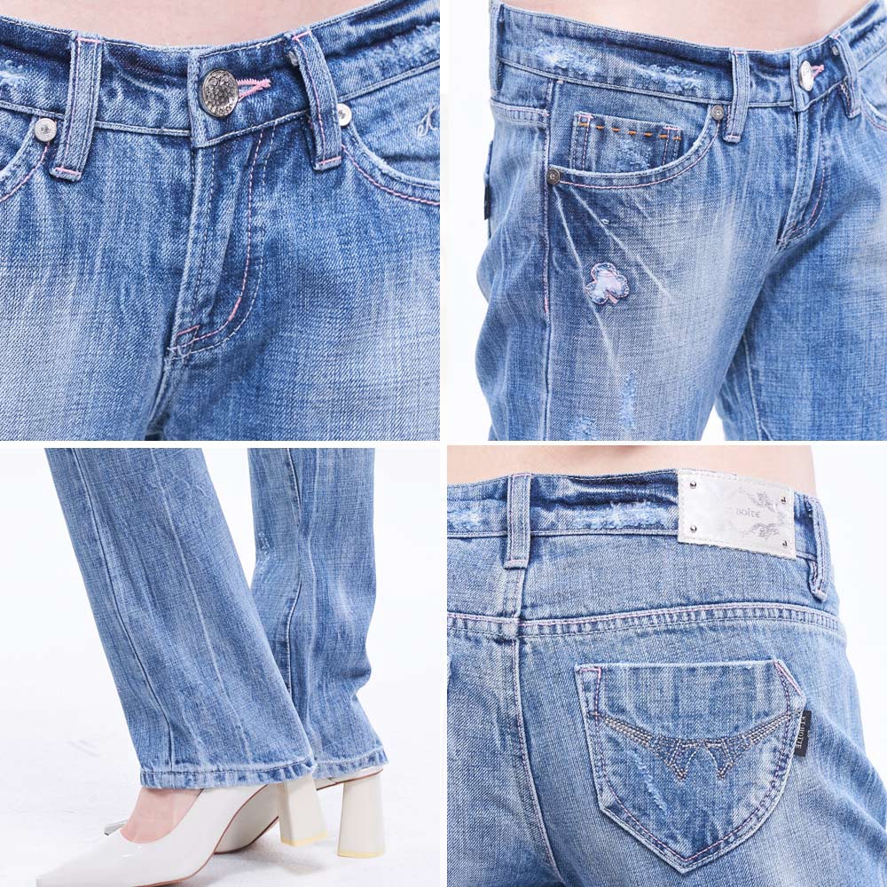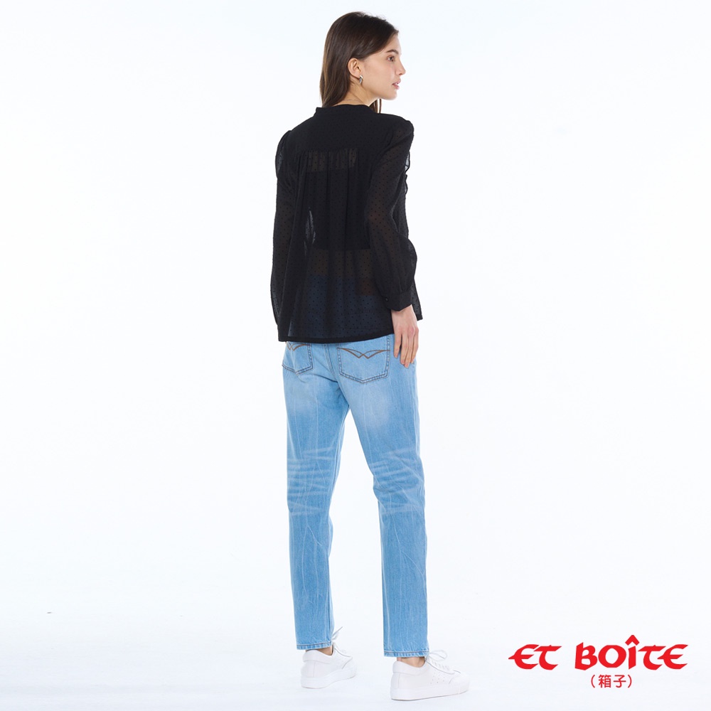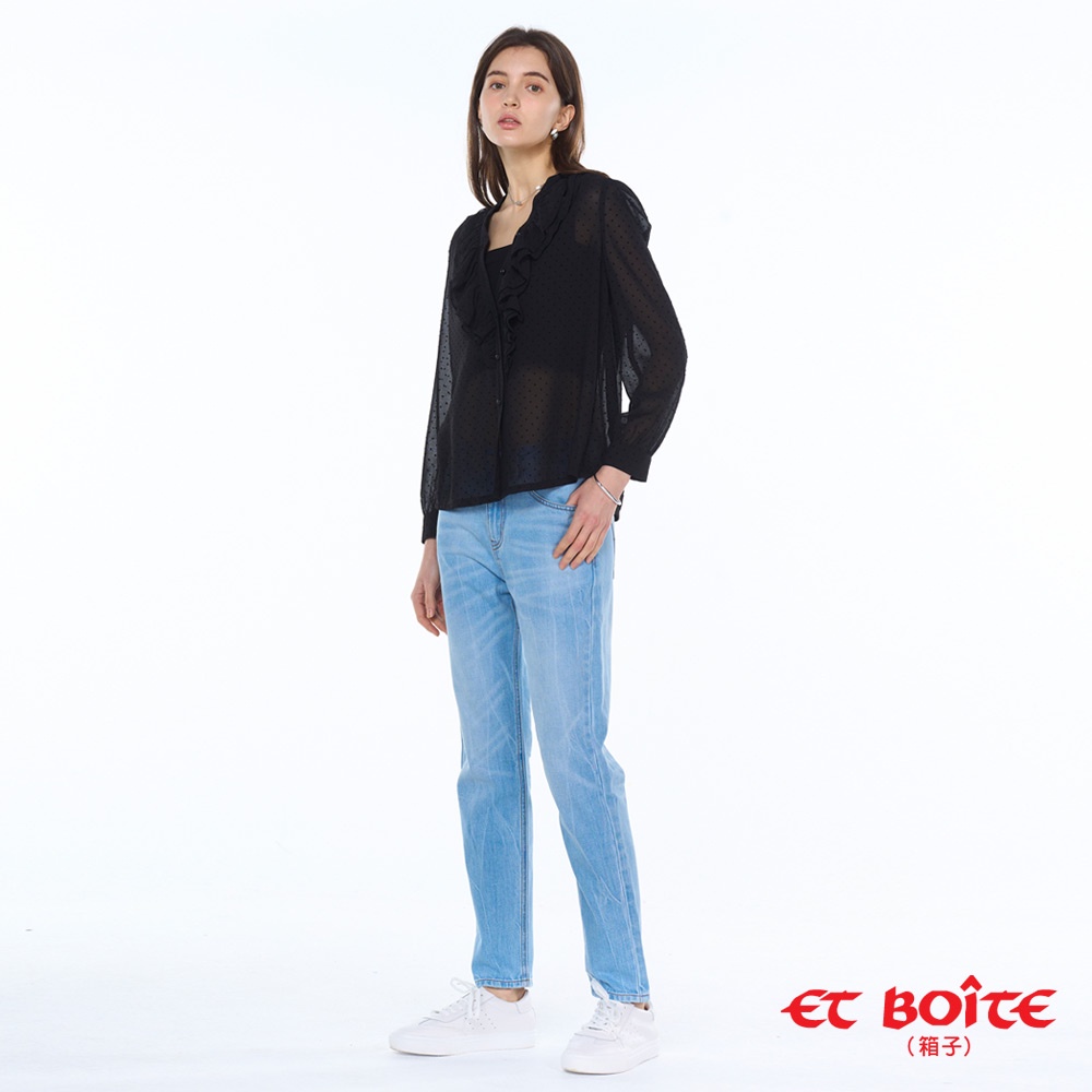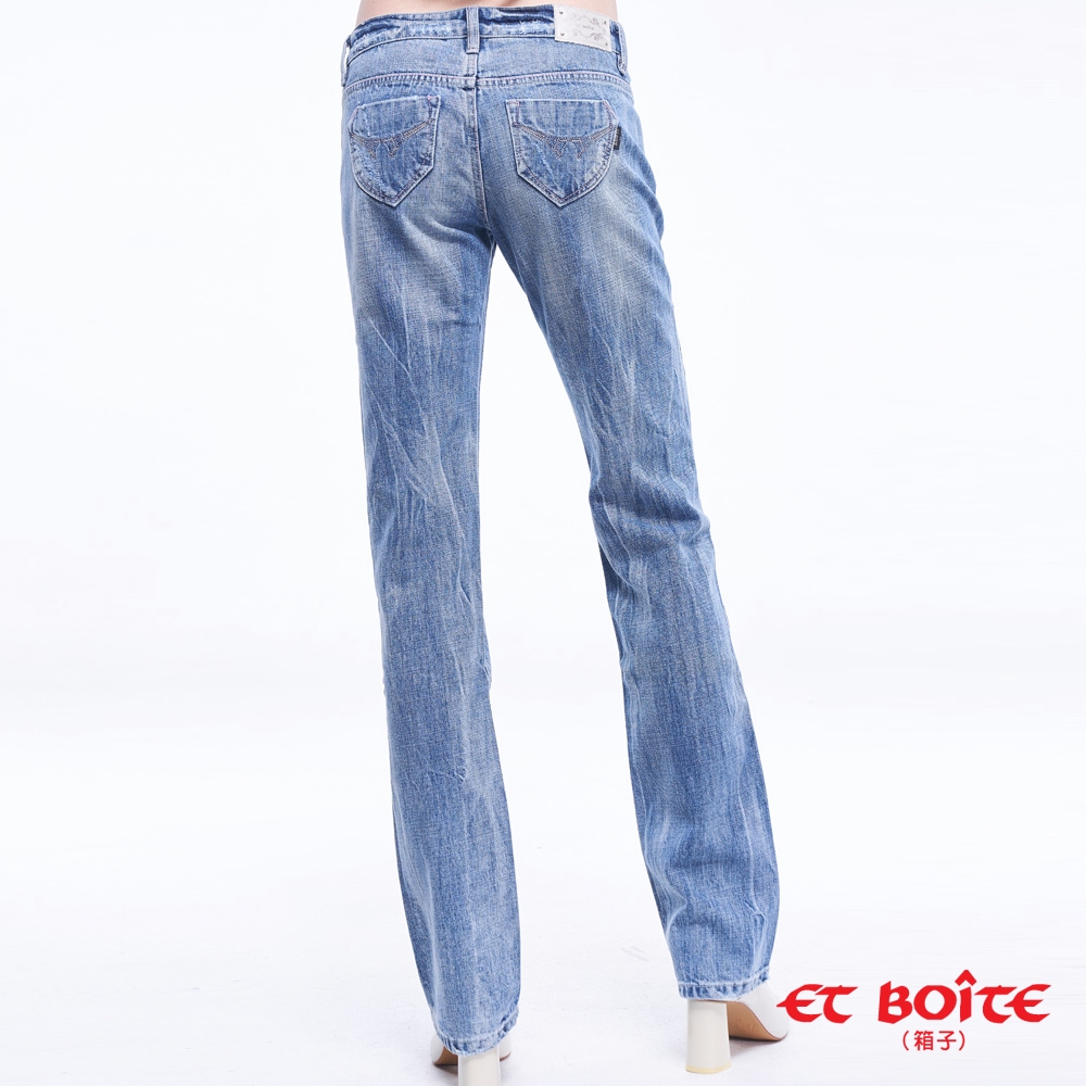 BLUE WAY ET BOiTE 箱子 – 鐵塔繡花男友風直筒褲(淺藍S碼)SPantsBLUE WAY官方旗艦店