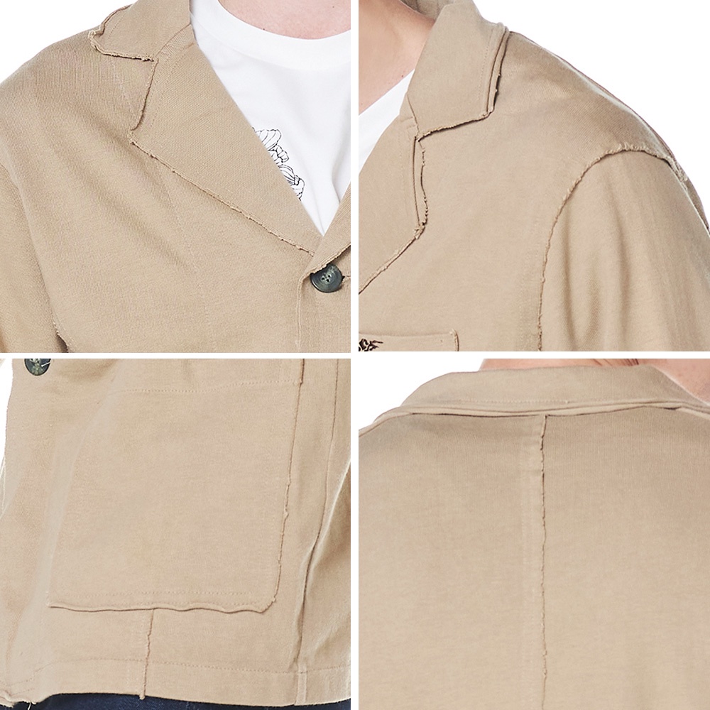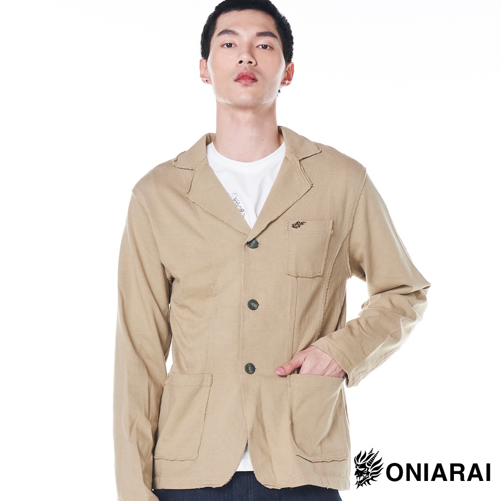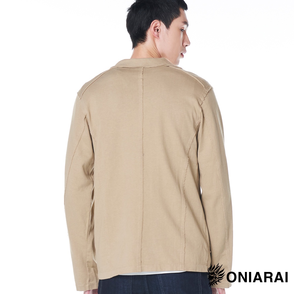 BLUE WAY 鬼洗 ONIARAI-針織棉布邊刷破西裝外套(卡其)M|LSuit Jackets & BlazersBLUE WAY官方旗艦店