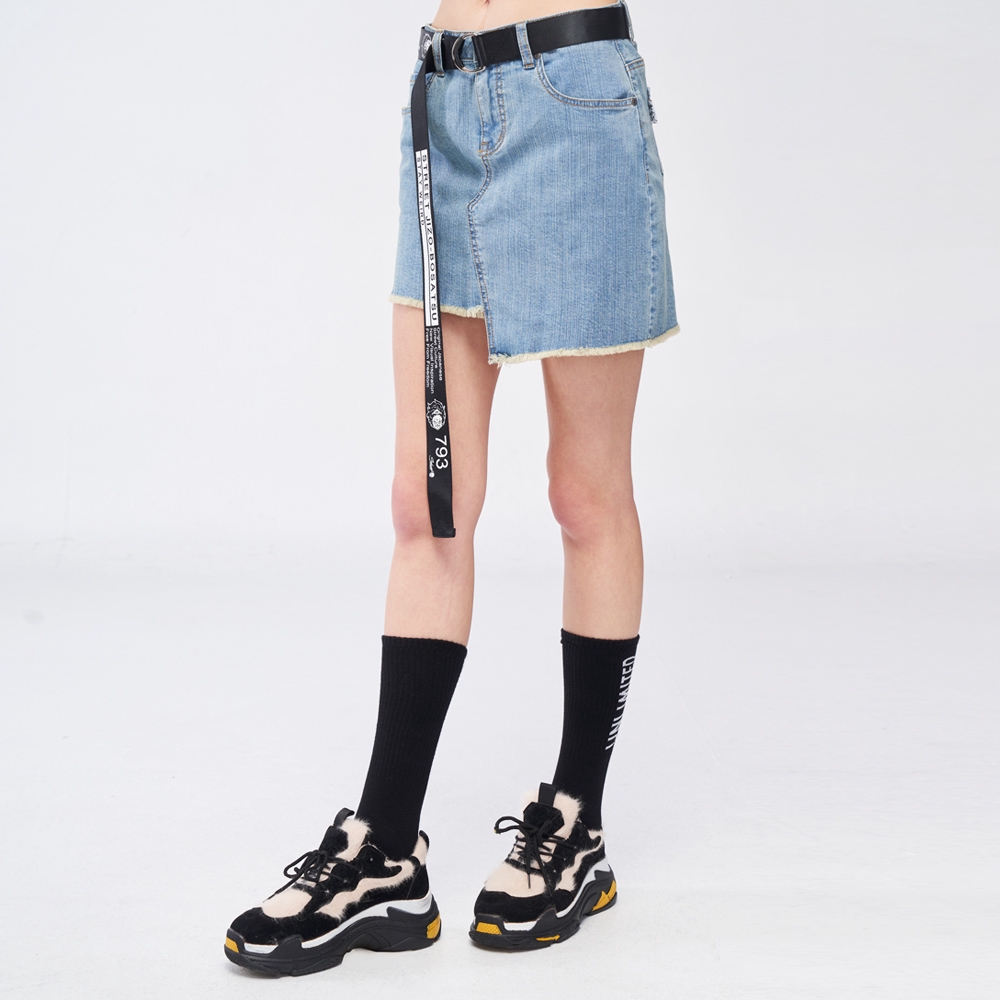 BLUE WAY 地藏小王 JIZO-地藏不對稱配皮帶短裙(牛仔藍)S|M|LBLUE WAY官方旗艦店